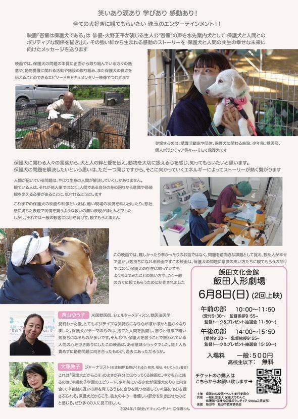 なお、当日の収益の一部は、保護犬の啓発活動をおこなう愛護団体「保護わん」へ寄付されるチャリティー上映となっています。