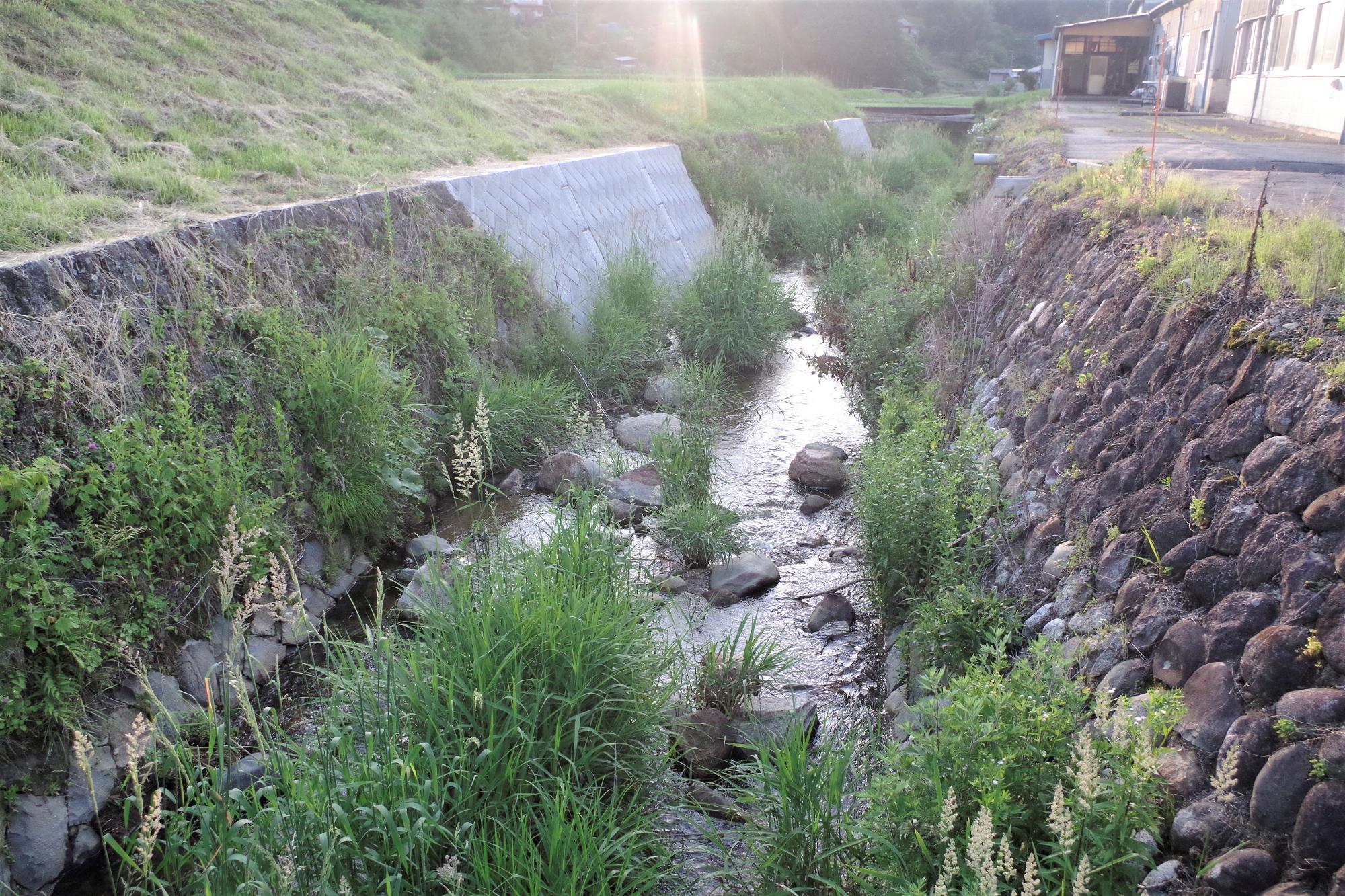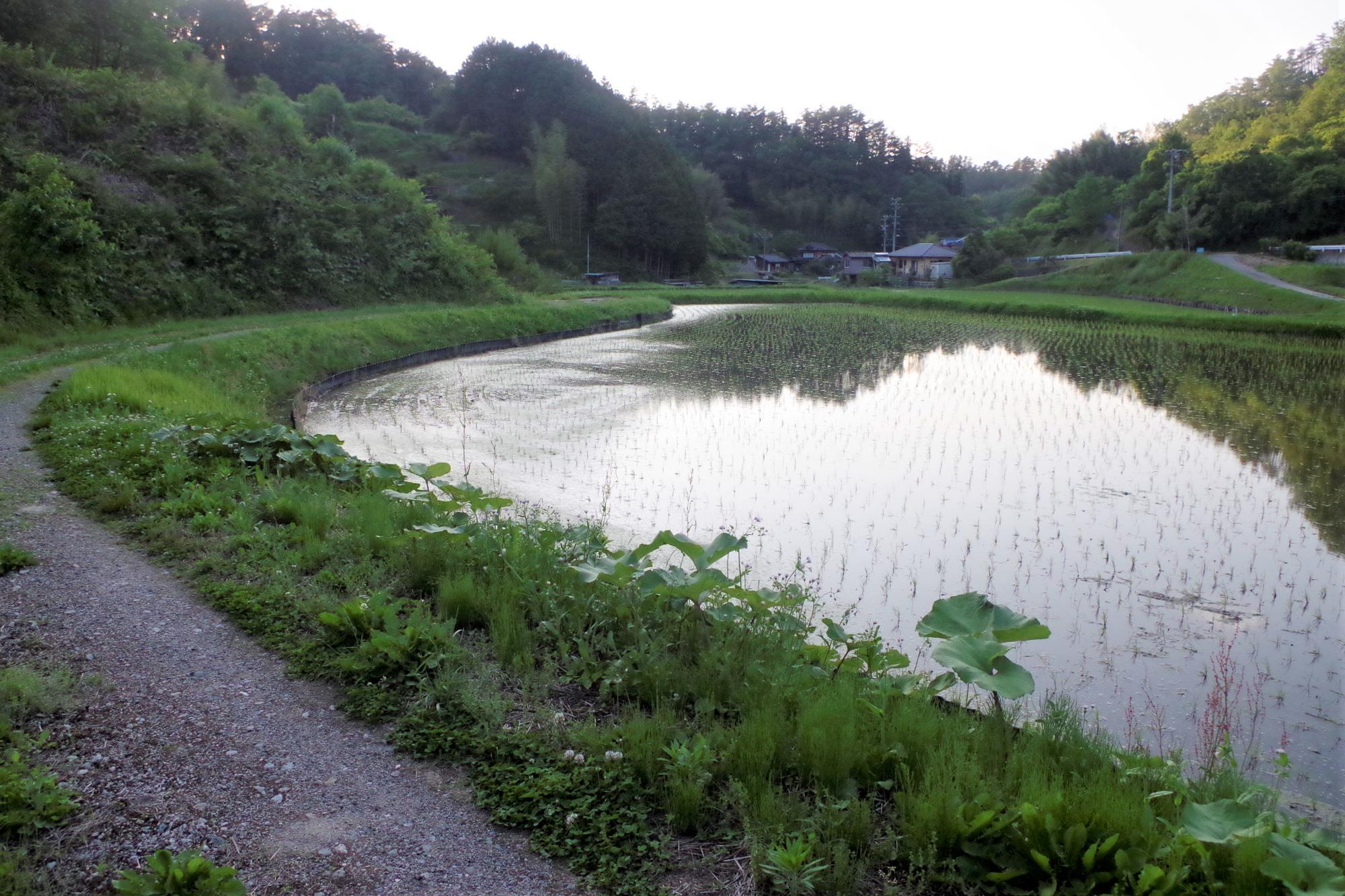 写真は、ここだにファームの裏手を流れている紅葉川周辺のものです。蛍が見られそうな川や田んぼ、用水路がありますね。