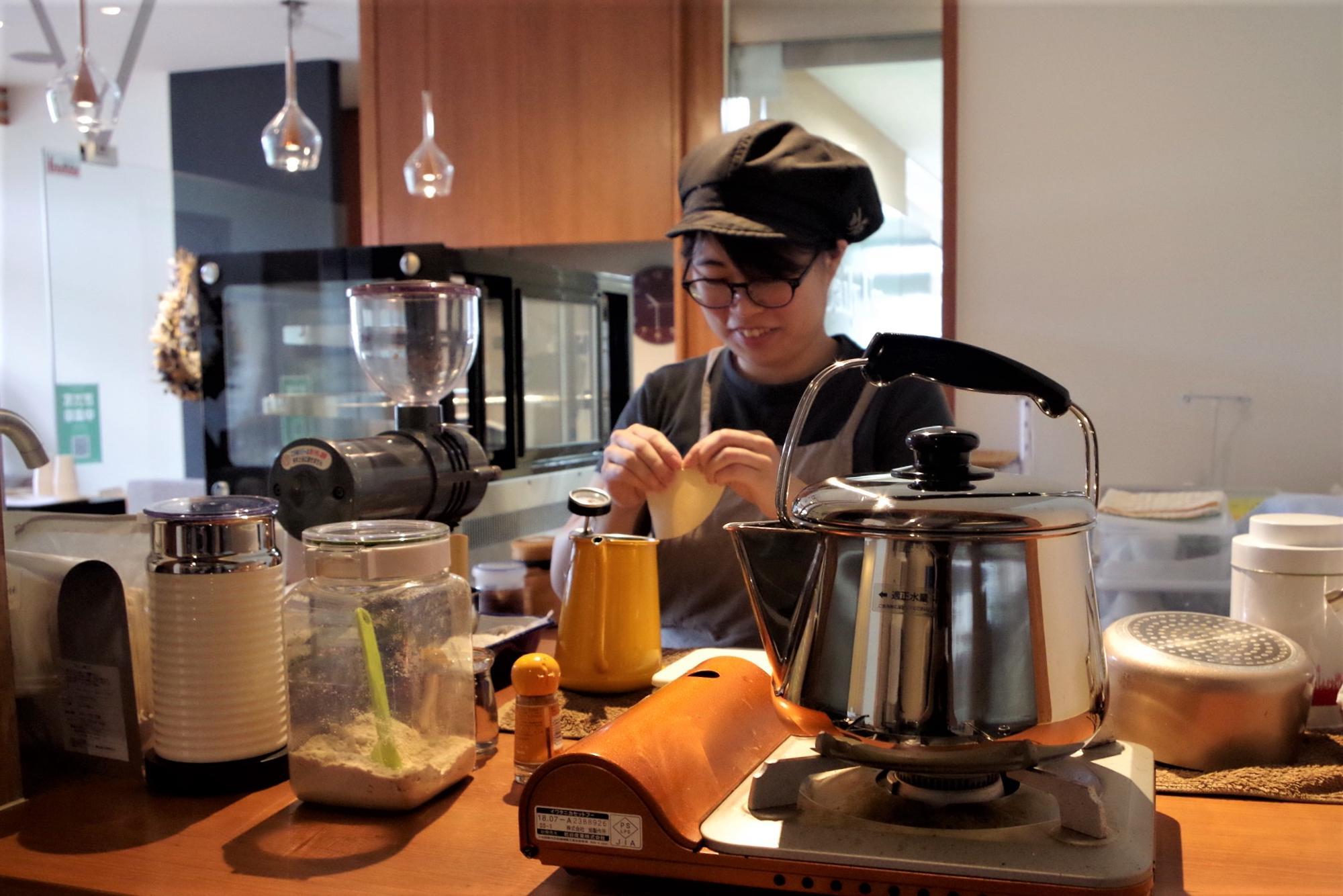 注文が入るたびに一杯ずつていねいにドリップされるコーヒーで、店内はいつも良い香りで包まれていました。