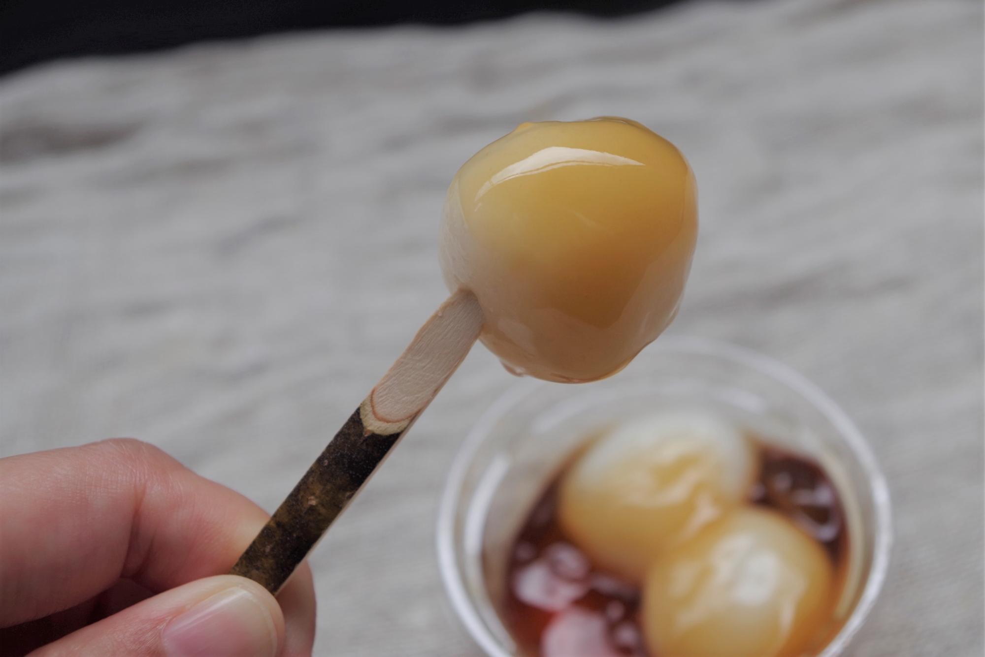 ん! 想像よりもひと粒が大きいですね!おだんご好きにとってはたまらないサイズ。口いっぱいのもちもち感が堪能できます。やわらか、もちもち、うまうま。