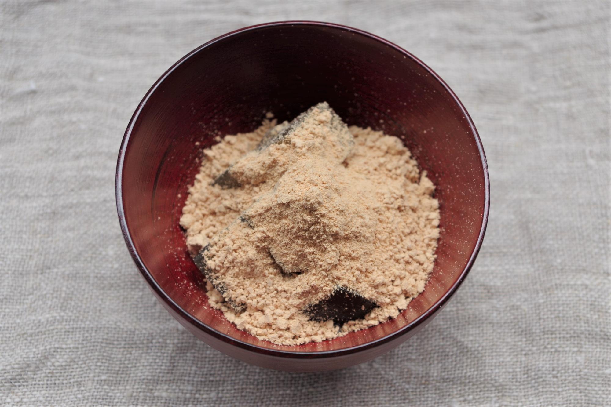 私自身は恥ずかしながら、くず粉の良しあしがわかるほどの和菓子通ではないのですが、このプルモチ食感が極上だということはわかりました。黒糖の深い甘みときな粉も相性が良く、高級な甘味を堪能することができました。