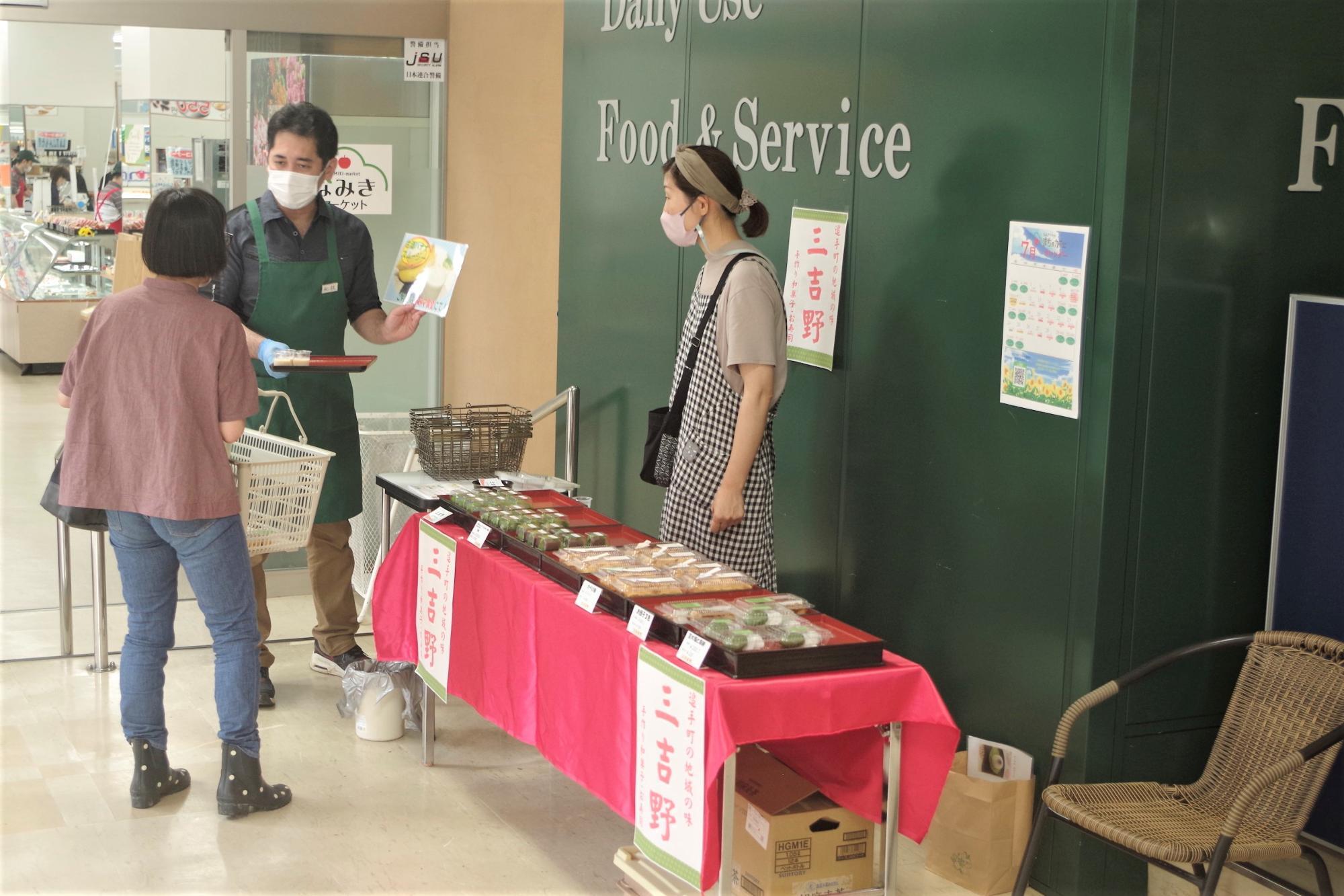 行ってみると、以前取材をさせていただいた三吉野の和菓子がなみきマーケットの催事スペースに並んでいました。
