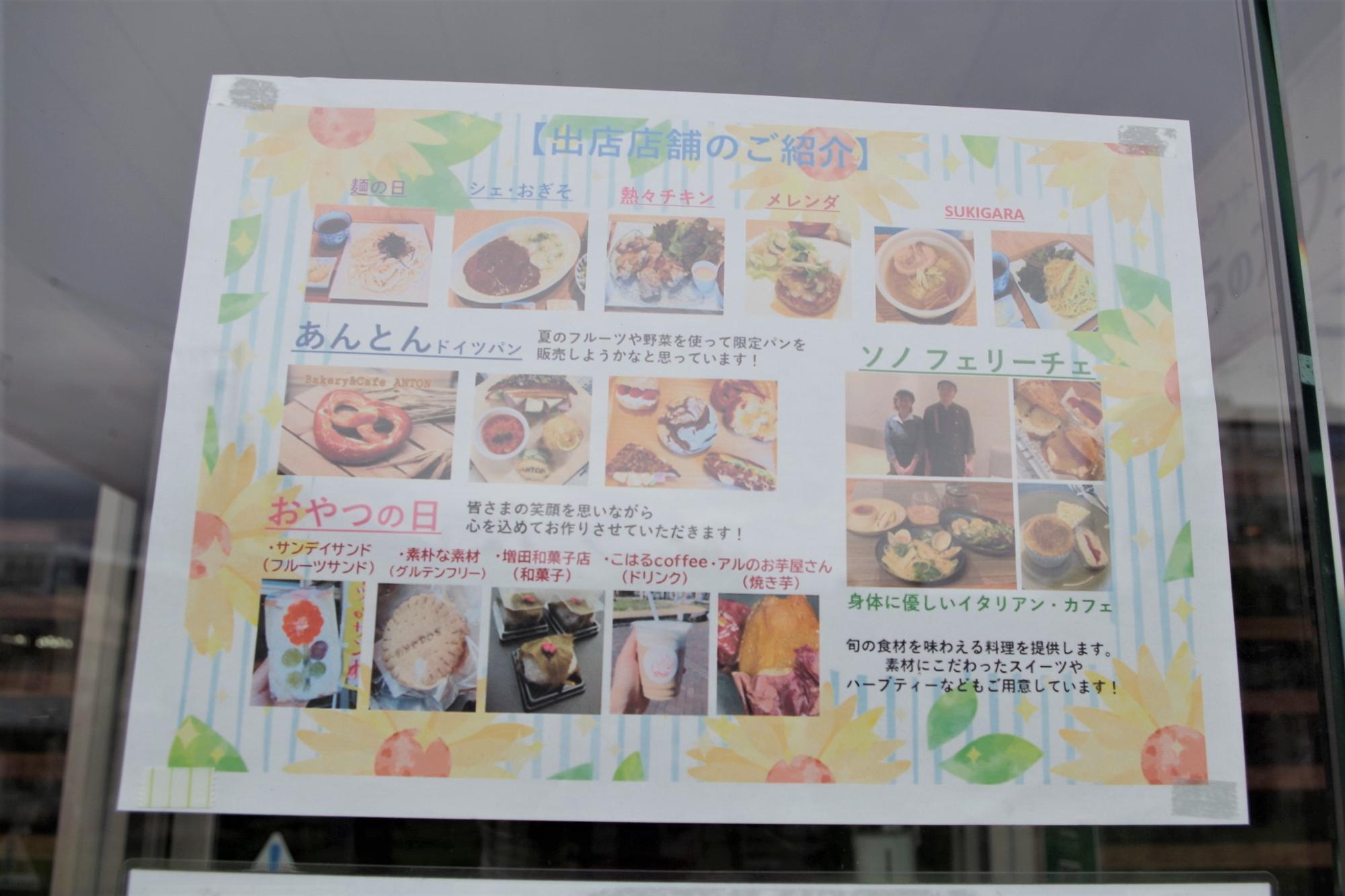 出店予定店舗名:サンデイサンド、素朴な素材、こはるcoffee、アルのお芋屋さん、三穂の増田和菓子店(順不同)
