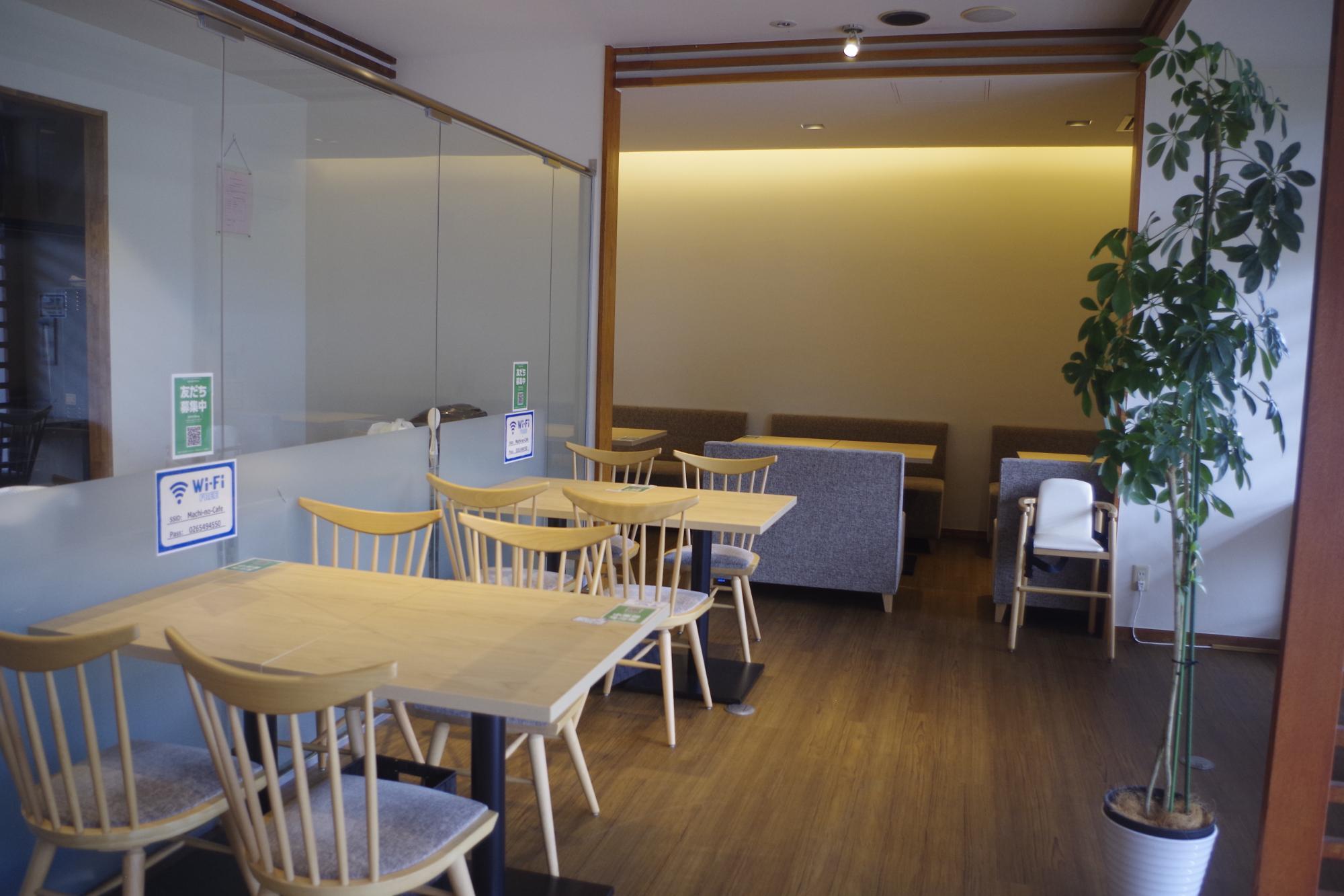普段の店内の様子。おやつの日のイベント中は、店内レイアウトは変更になるものの、テーブル席がいくつか残るため、購入したおやつをカフェ席で食べることもできるようです。