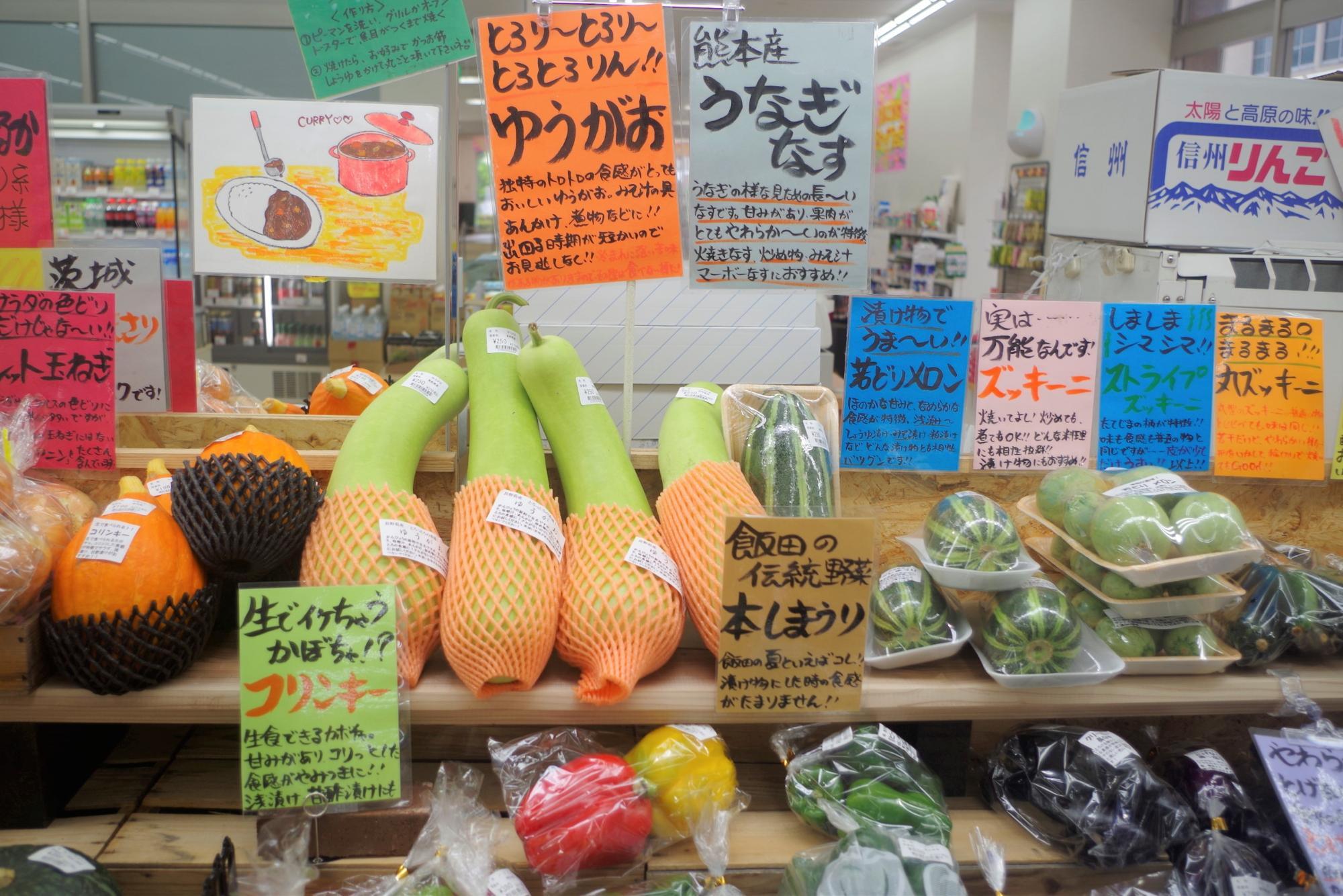 広々とした店内は、一見普通のスーパーマーケットのようですが、よく見ると地元野菜中心に扱う野菜売り場があったり、地元精肉店が入っていたりと、飯田下伊那に特化した食材がそろう市場のような様相になっています。
