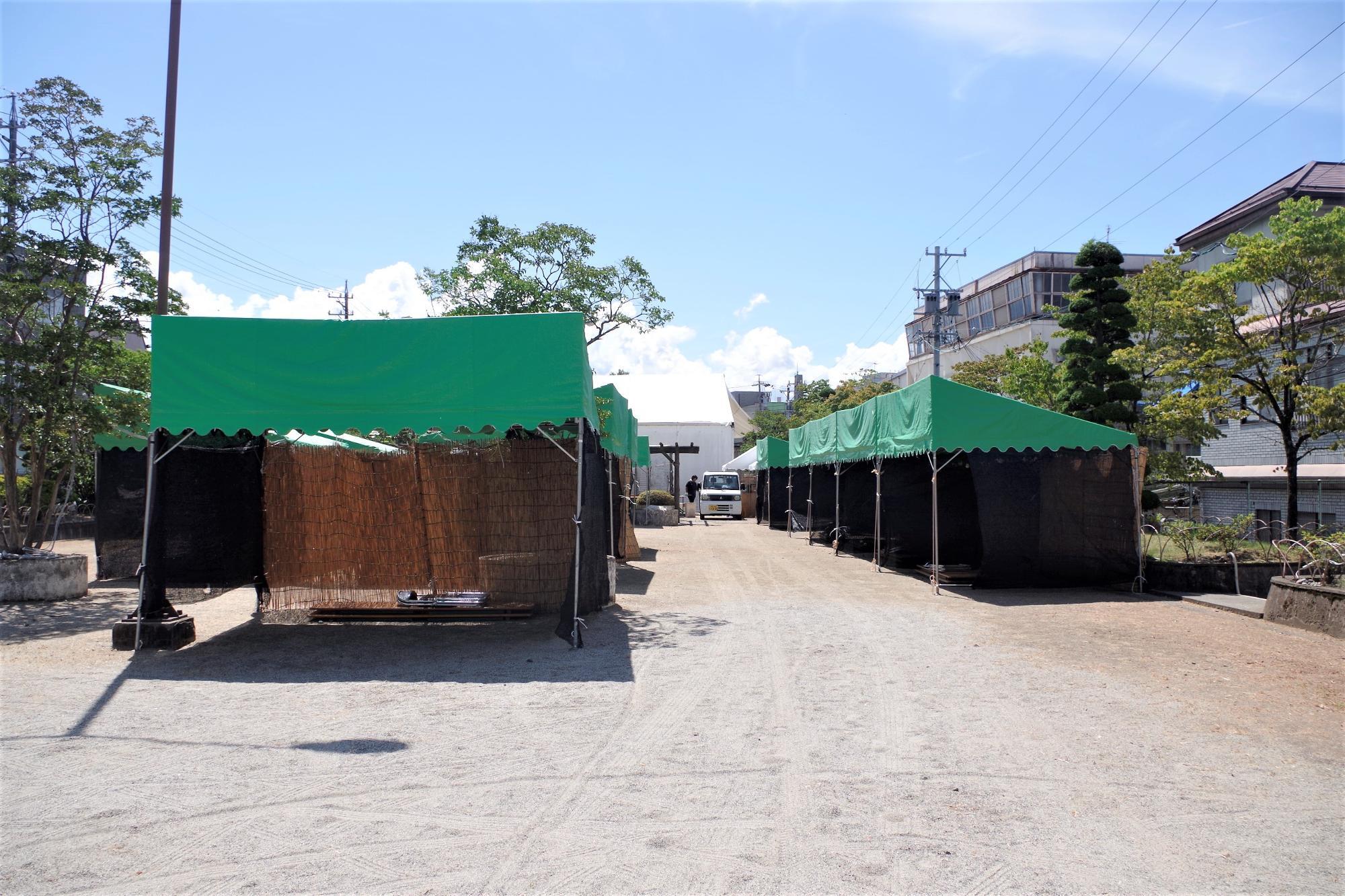 続いて訪れたのは、中央公園です。こちらも急ピッチでテントが建てられていました。いつもの噴水のある広場の様子が様変わりしていますね! 8月3日からはテントブースの飲食店さんからおいしそうな匂いもしてくるのでしょう♪