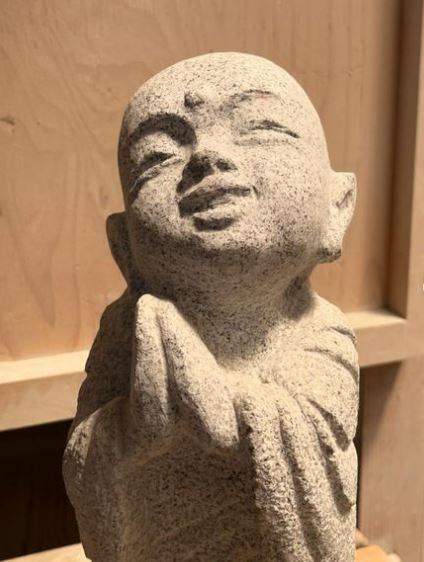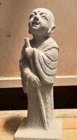 今年の新作は、穏やかなお顔のお地蔵様の群像。お地蔵様は、いずれもサイズ40~60センチメートル、重さ5~20キログラムほど、南信州泰阜村産の天竜青みかげ石製です。