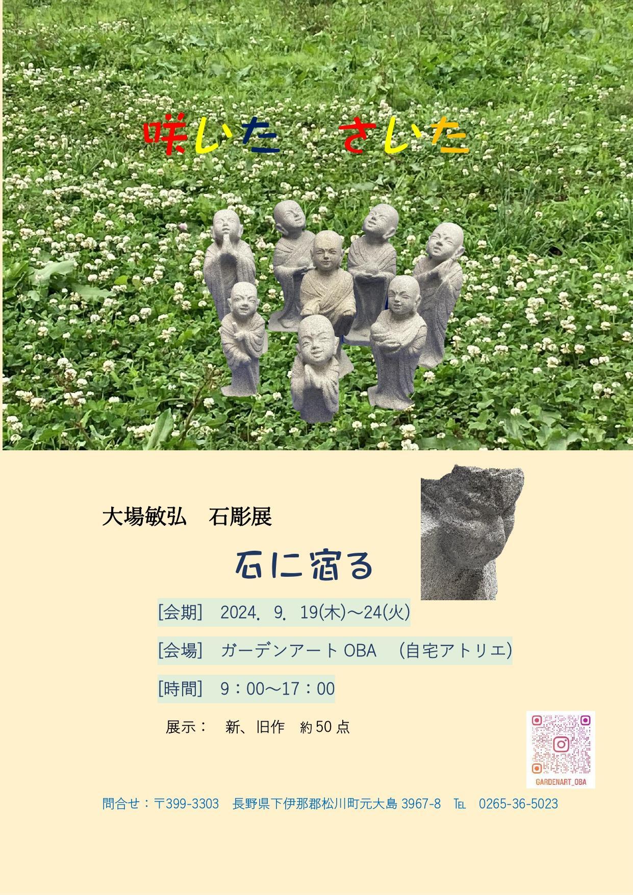 彫刻家・大場敏弘さんによる石像などの新・旧作品のなかから約50点以上を一挙に見ることができる作品展です。