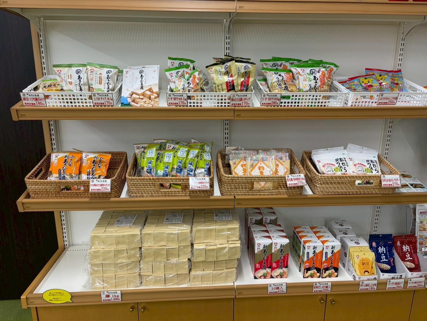 直営店では、旭松食品の商品ほぼ全ラインナップがそろっているほか、ここでしか買えない商品があるのが特徴です。