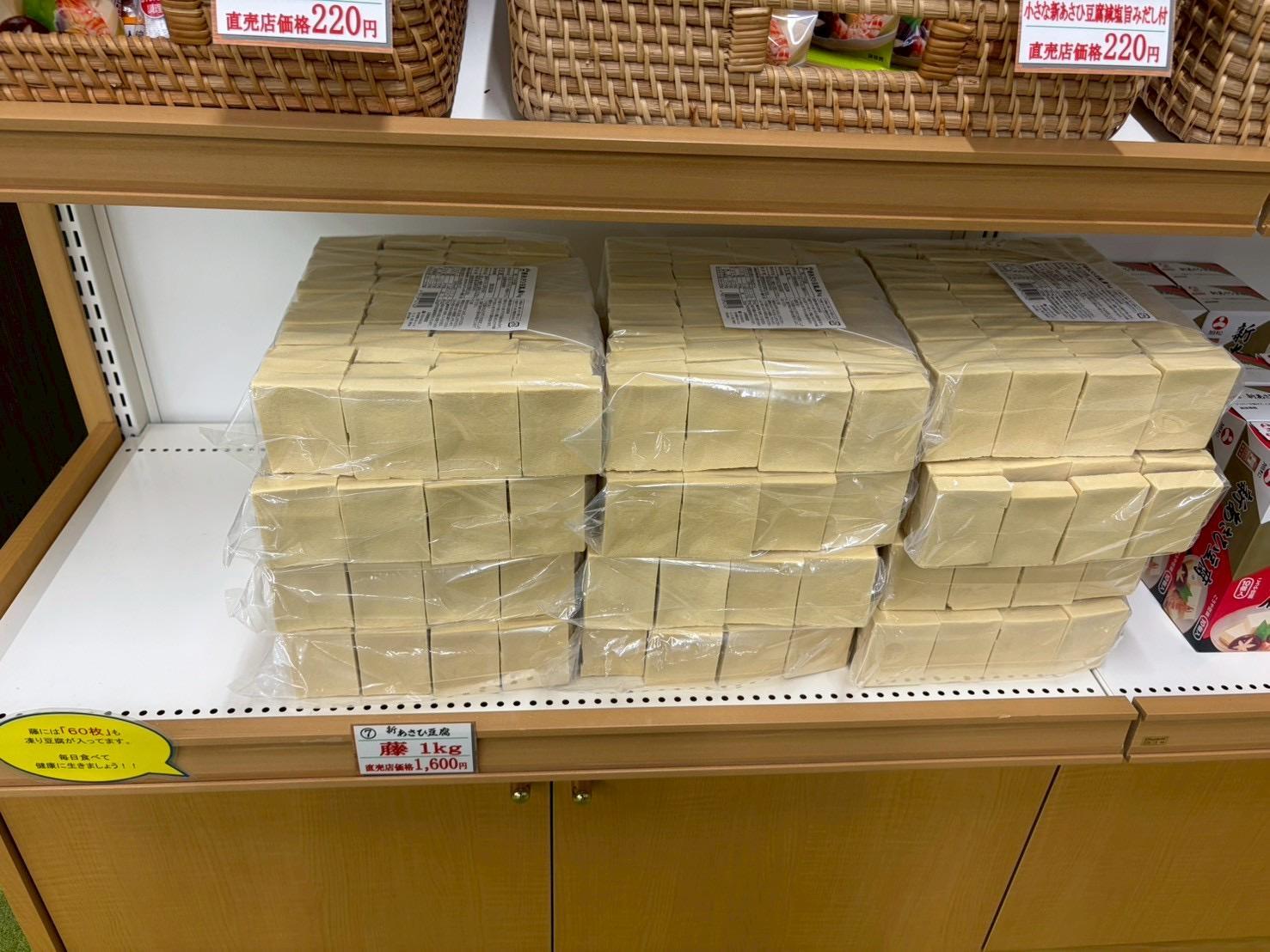 工場敷地内にある直営店「新あさひ屋」では、スーパーなどでよく見かける定番の高野豆腐はもちろん、大容量パックやギフトなど、さまざまな商品が販売されています。