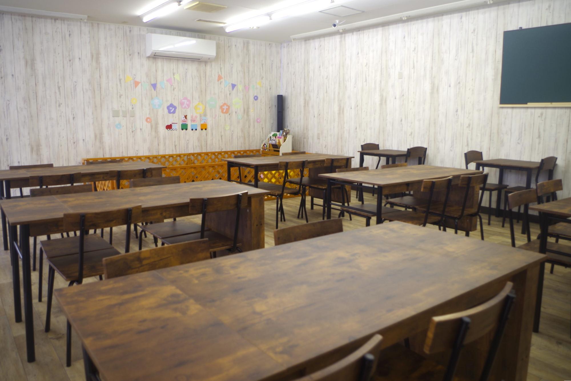 12卓40席の広々とした新店舗には、ちょっとしたキッズスペースも併設されています。座席同士の間も比較的ゆったりしているので、ベビーカーでも訪れることができそうです!