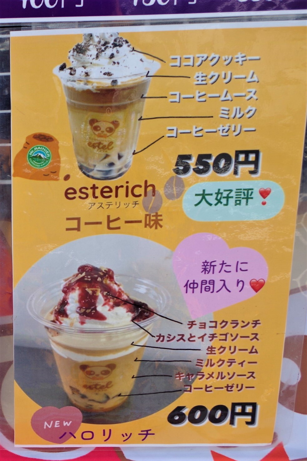 そのほか、シンプルなアイスコーヒー(税込350円)、アイスカフェオレ(税込400円)もありました。
