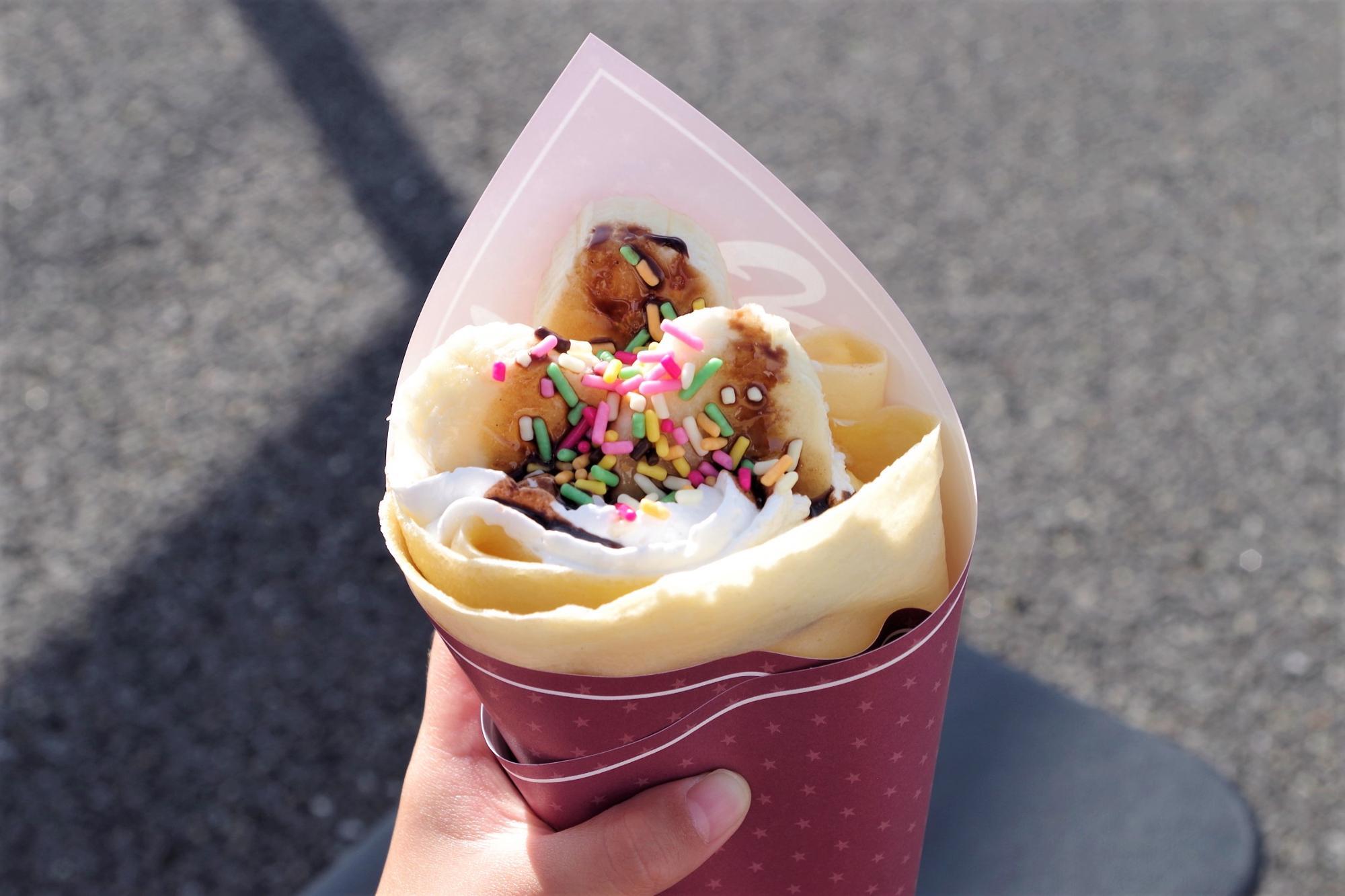 まずは生クリームがたっぷり入ったオーソドックスなチョコバナナクリームクレープをいただきます。