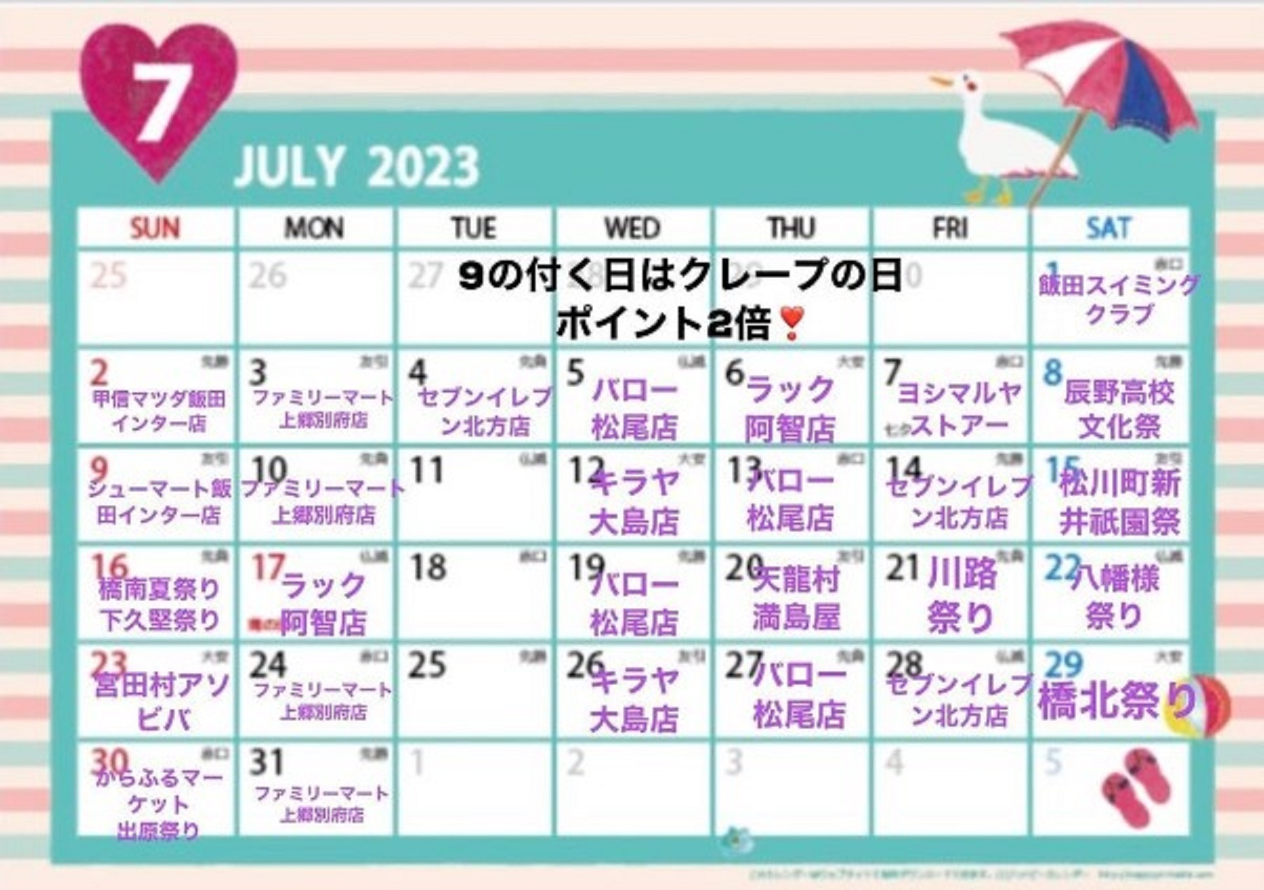7月の出店予定は下のスケジュールをチェックしてみてくださいね。