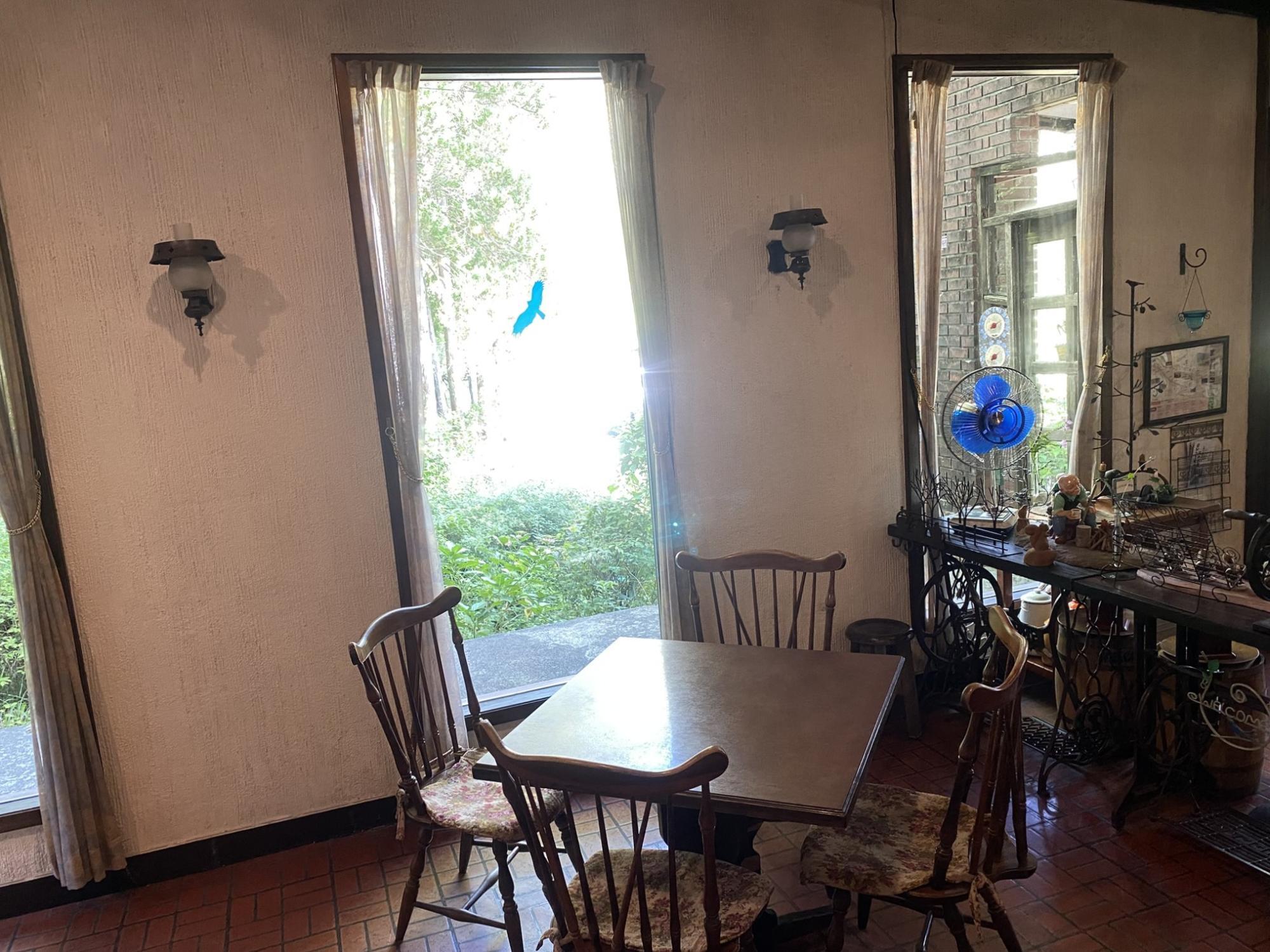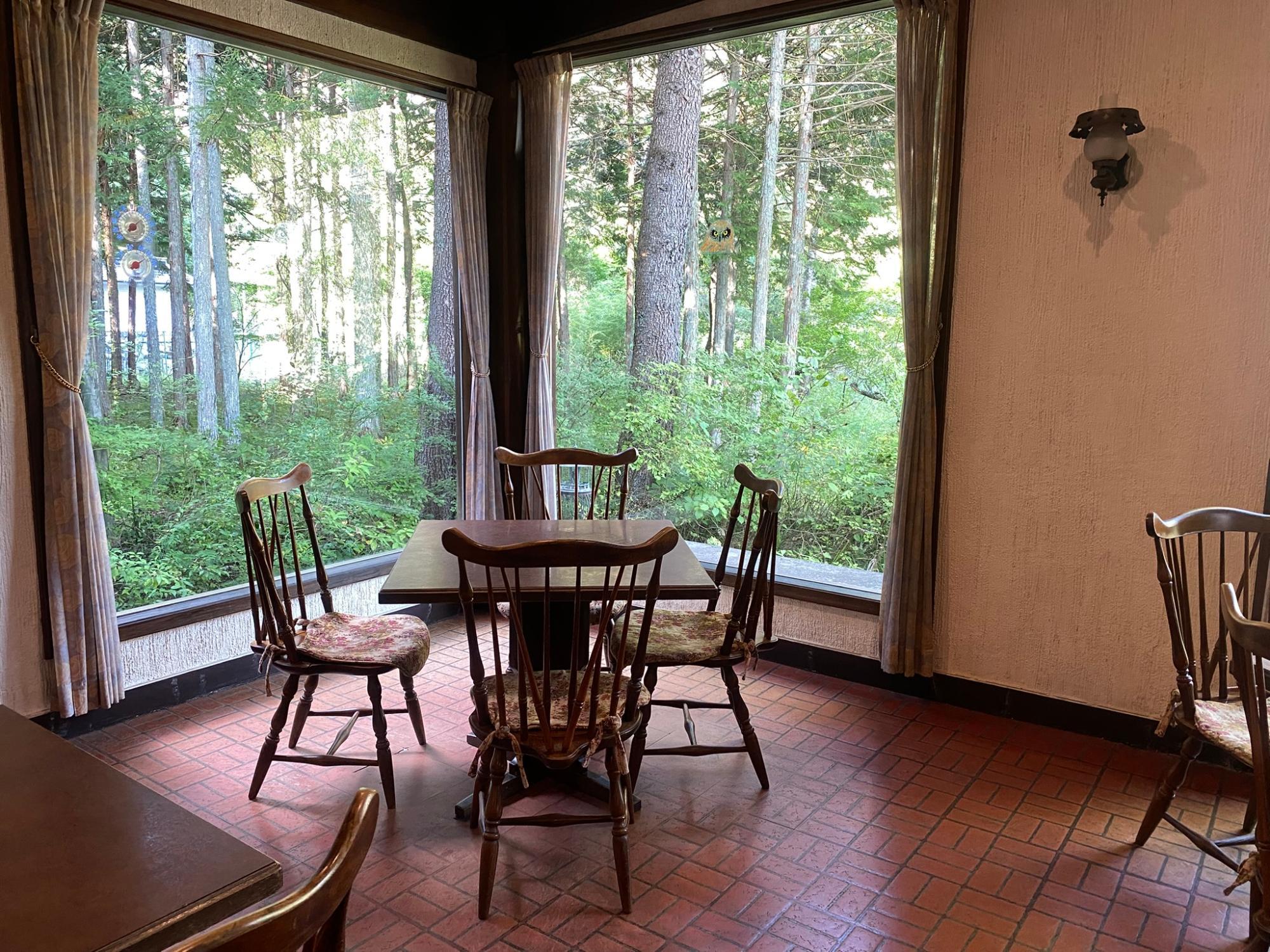 クラシカルな雰囲気の落ち着いた店内では、大きな窓がひときわ目に留まります。