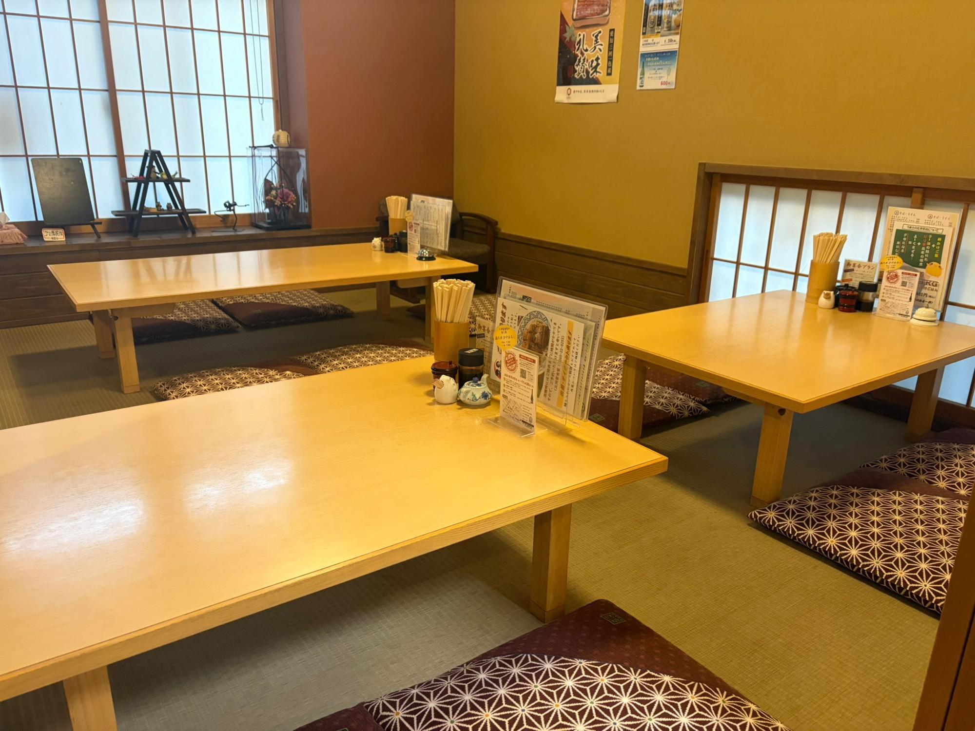 和の雰囲気が落ち着く店内には、畳の座敷席のほかにテーブル席、カウンター席があります。