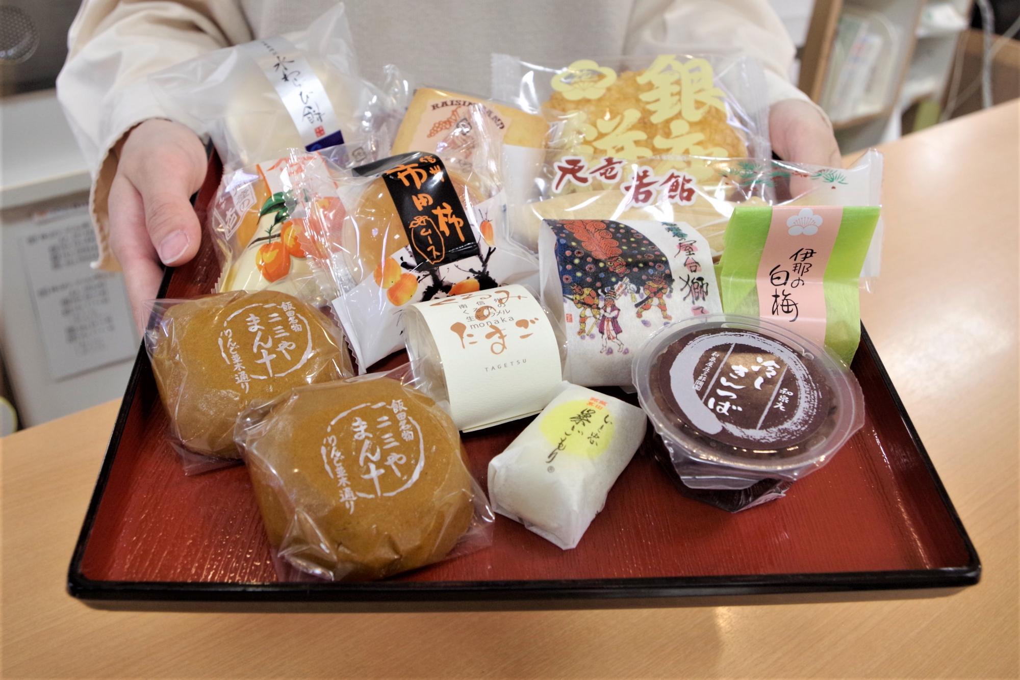 いろんなお店の、いろんな和菓子が少しずつ購入できるみつばつつじイオン飯田店。