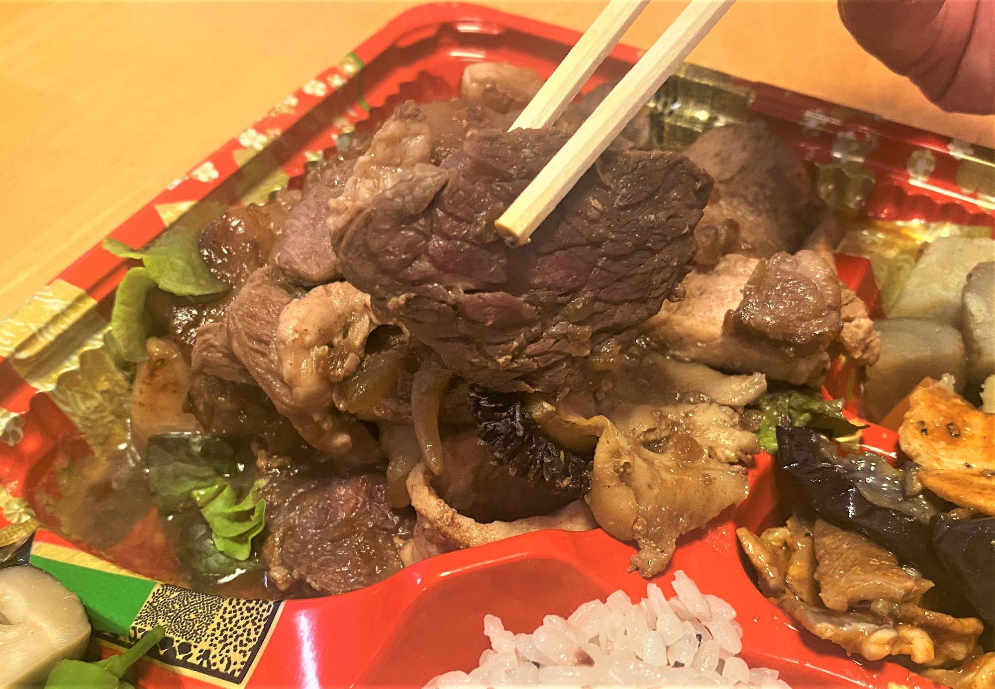 このお弁当だけは、お肉のおいしさで食が進みすぎるので…ご飯がちょっと少なく感じてしまいました。
