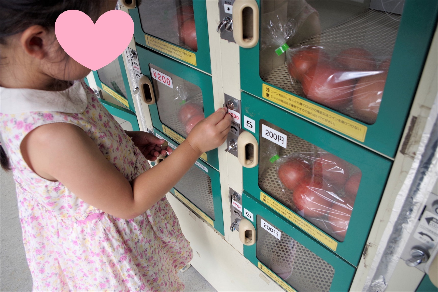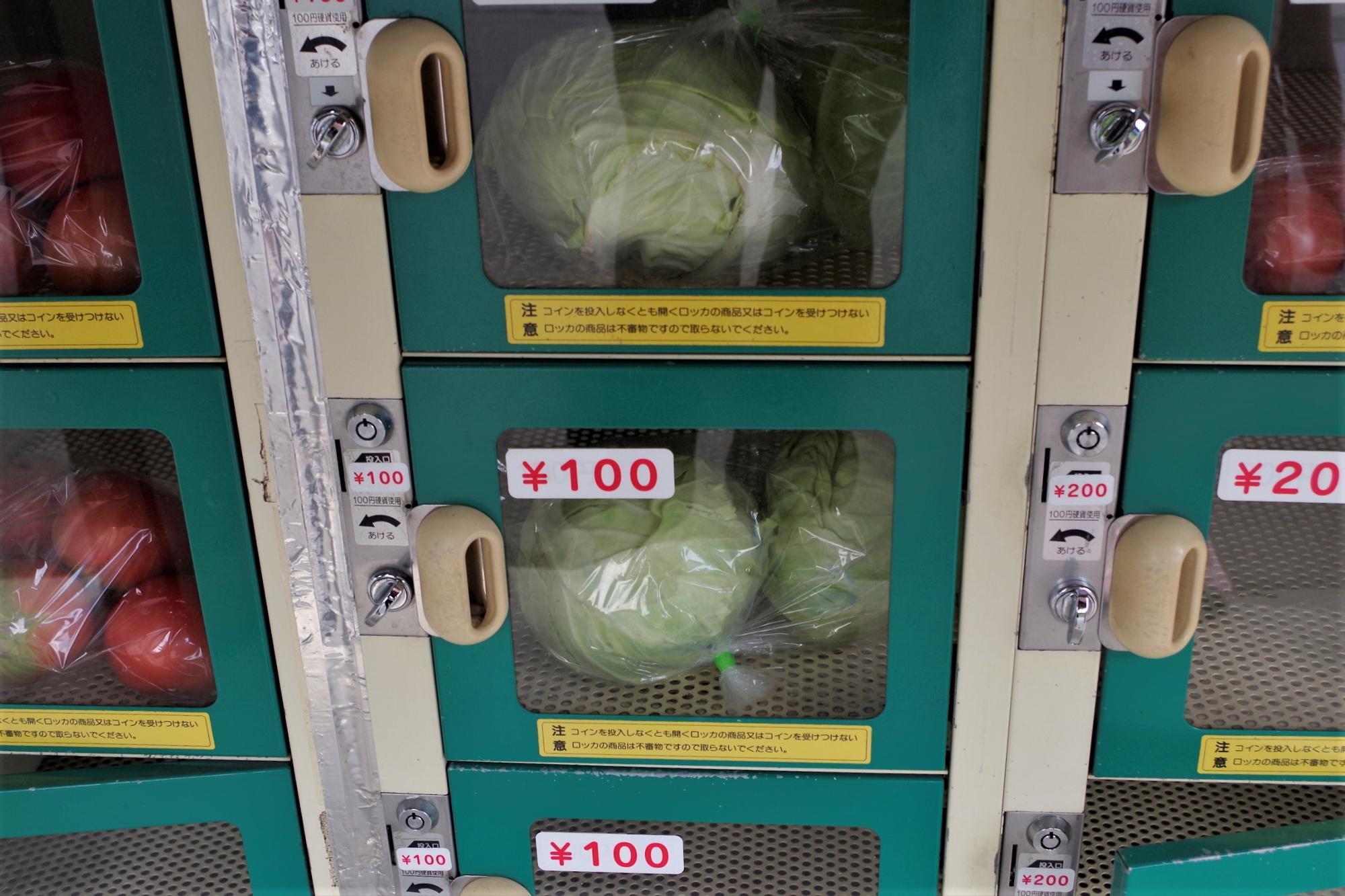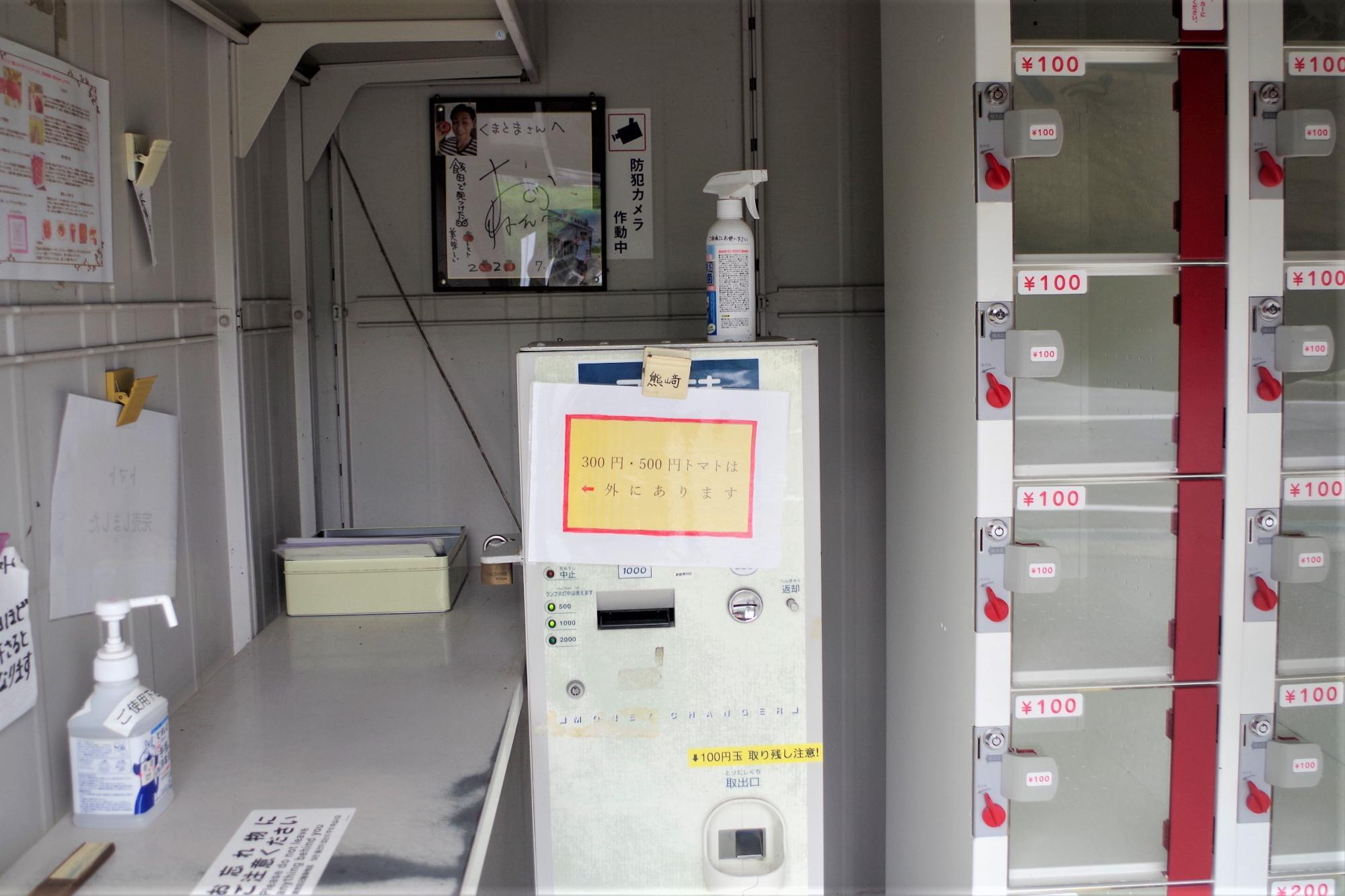新鮮なトマトが、コインロッカー風の自販機のなかにずらりと並んでいます!