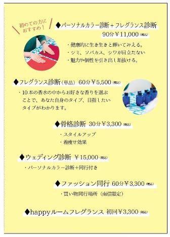 はじめての方には基本のパーソナルカラーチェック(+フレグランス)90分(税込11,000円)がおすすめ。