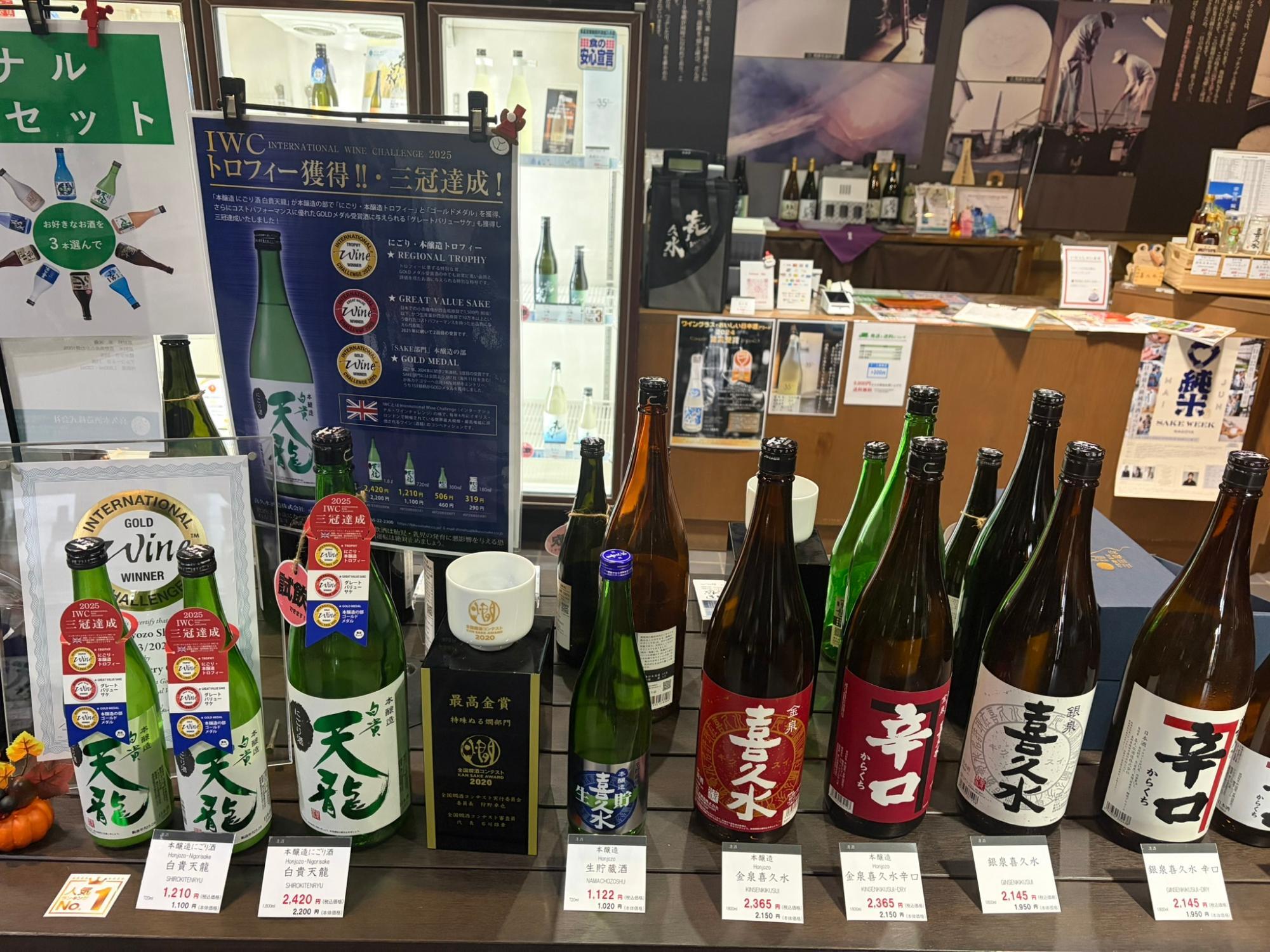 直営ショップ「翠嶂館(すいしょうかん)」では、限定酒や季節商品を購入可能。また、酒造りの様子をビデオで見たり、一部のお酒を試飲することも可能です。