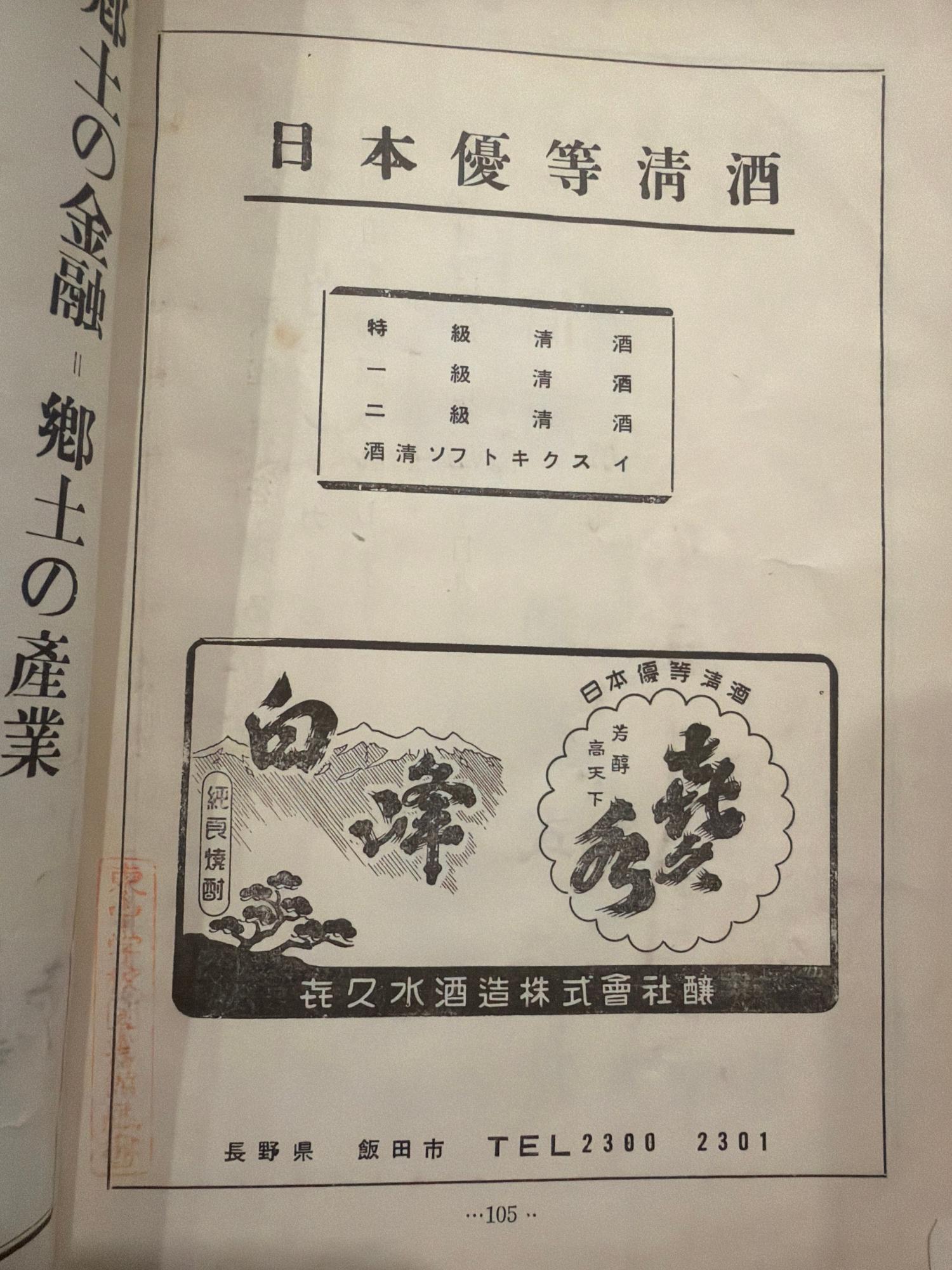 (意訳)(兵庫県の)灘の酒造りに負けるものかと努力し続けた結果、諏訪を超え、関西の酒どころにも引けを取らないほど急成長し、当時の飯田は“酒の町”として注目される存在になっていた──という意味です。