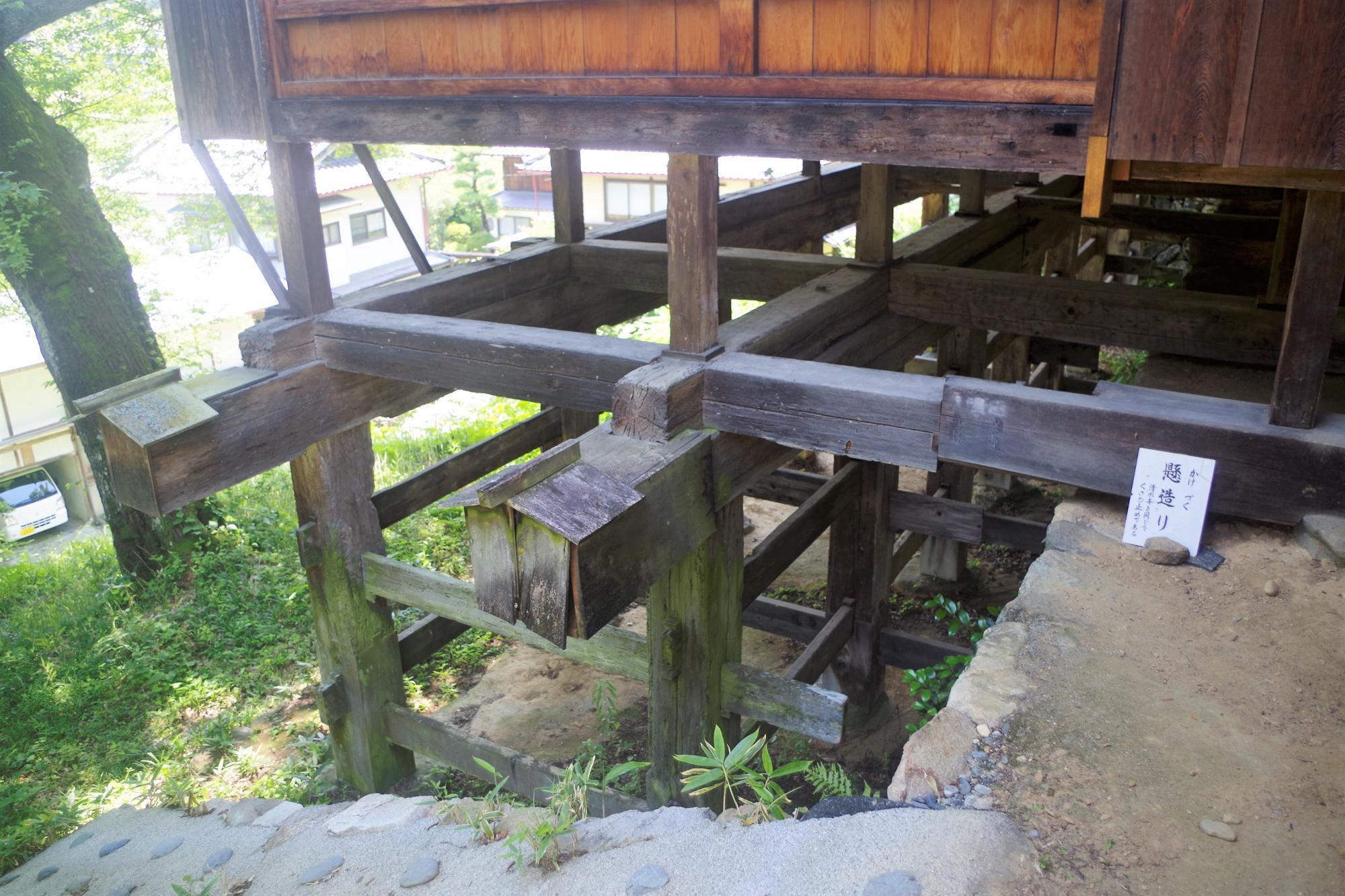 懸造は京都清水寺にも同じ工法が見られるように、主に寺社建築に用いられる建築様式だということですが、長野県には案外寺社仏閣以外にもこの造りの建物が多く残されているようです。