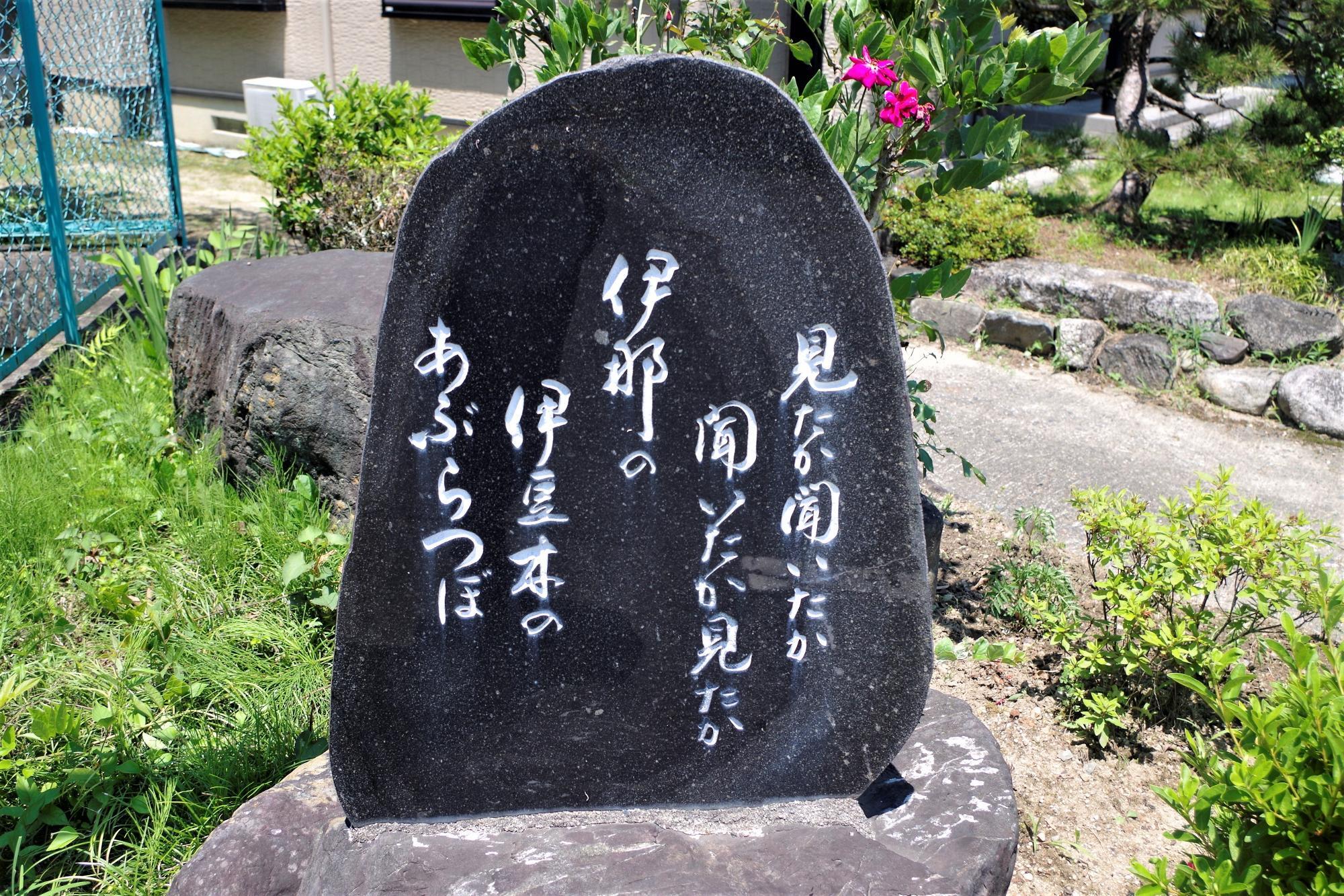 道中で石碑を発見。大正5年につくられたという伊那節の一節が記されています。