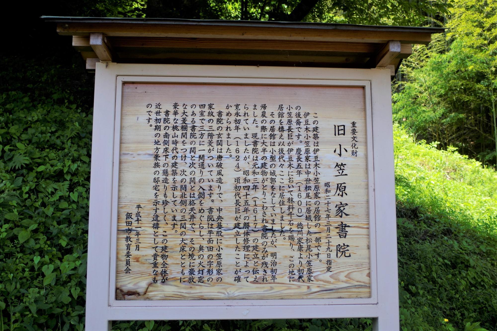 伊豆木小笠原家は、松尾城主だった松尾小笠原家の後裔だったと書かれています。ほかにも、この看板を見ると旧小笠原家書院の性格がよくわかります。