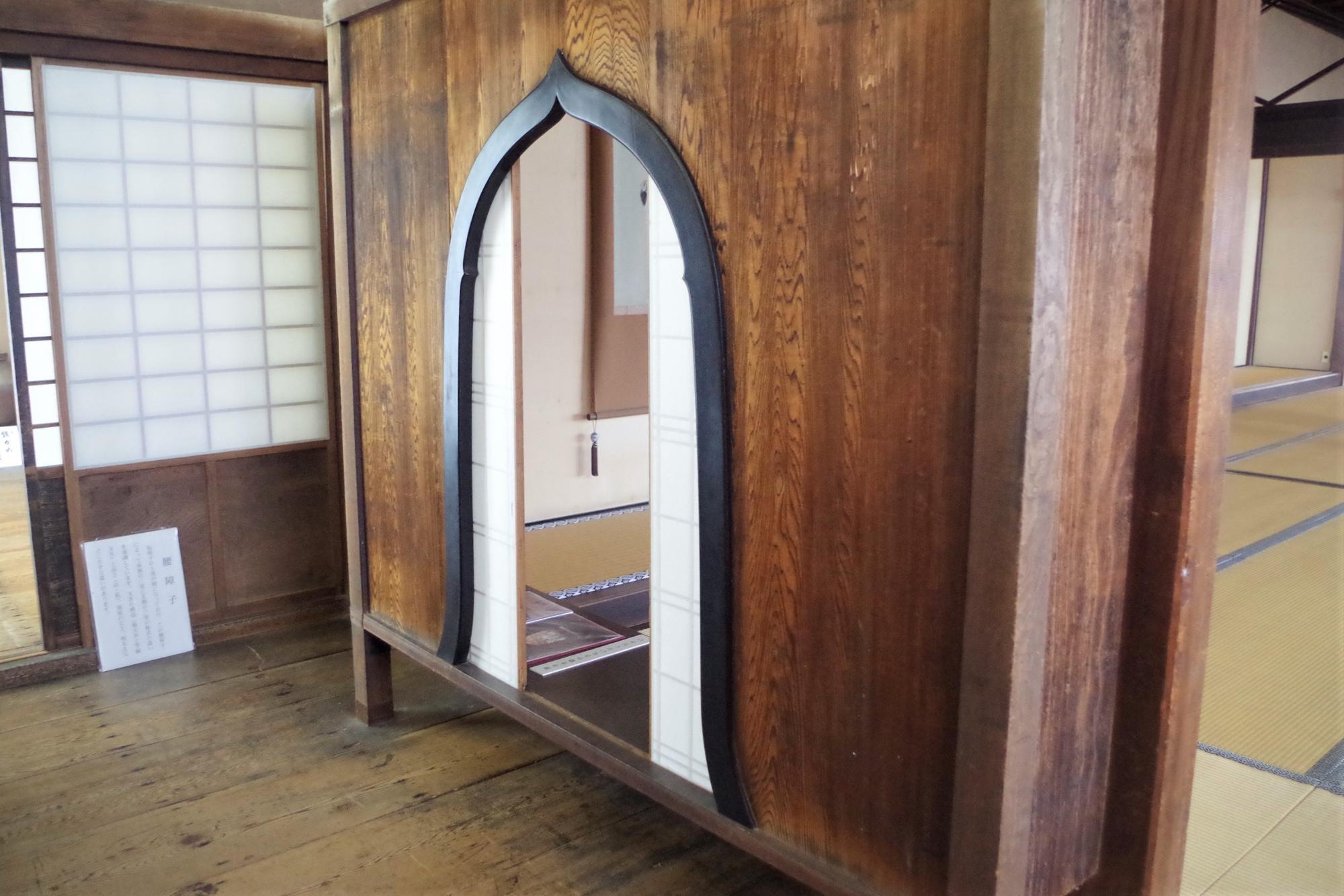 主(あるじ)の部屋と客間とを隔てた杉戸。