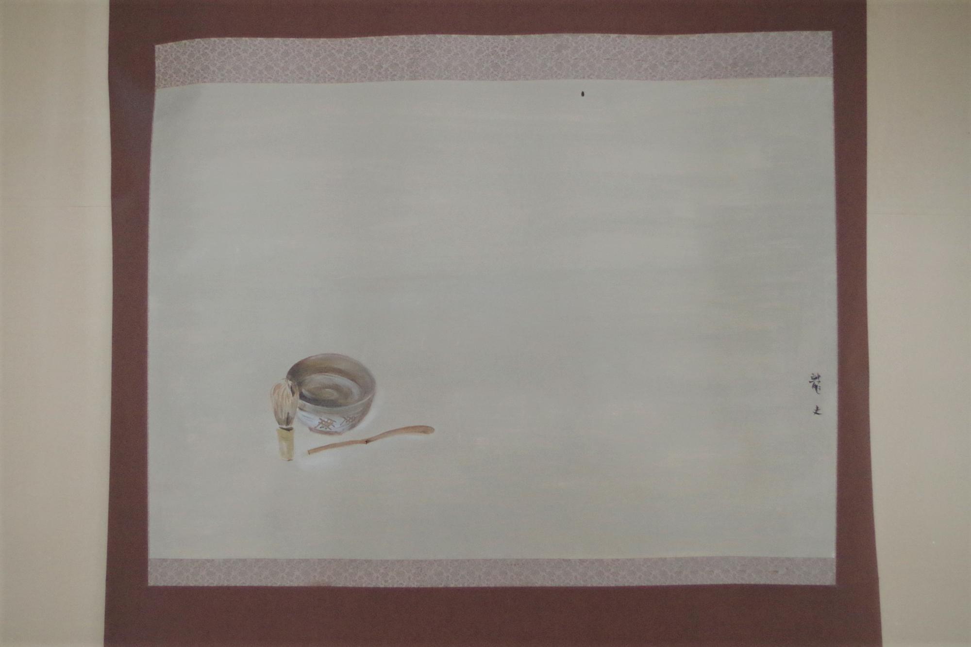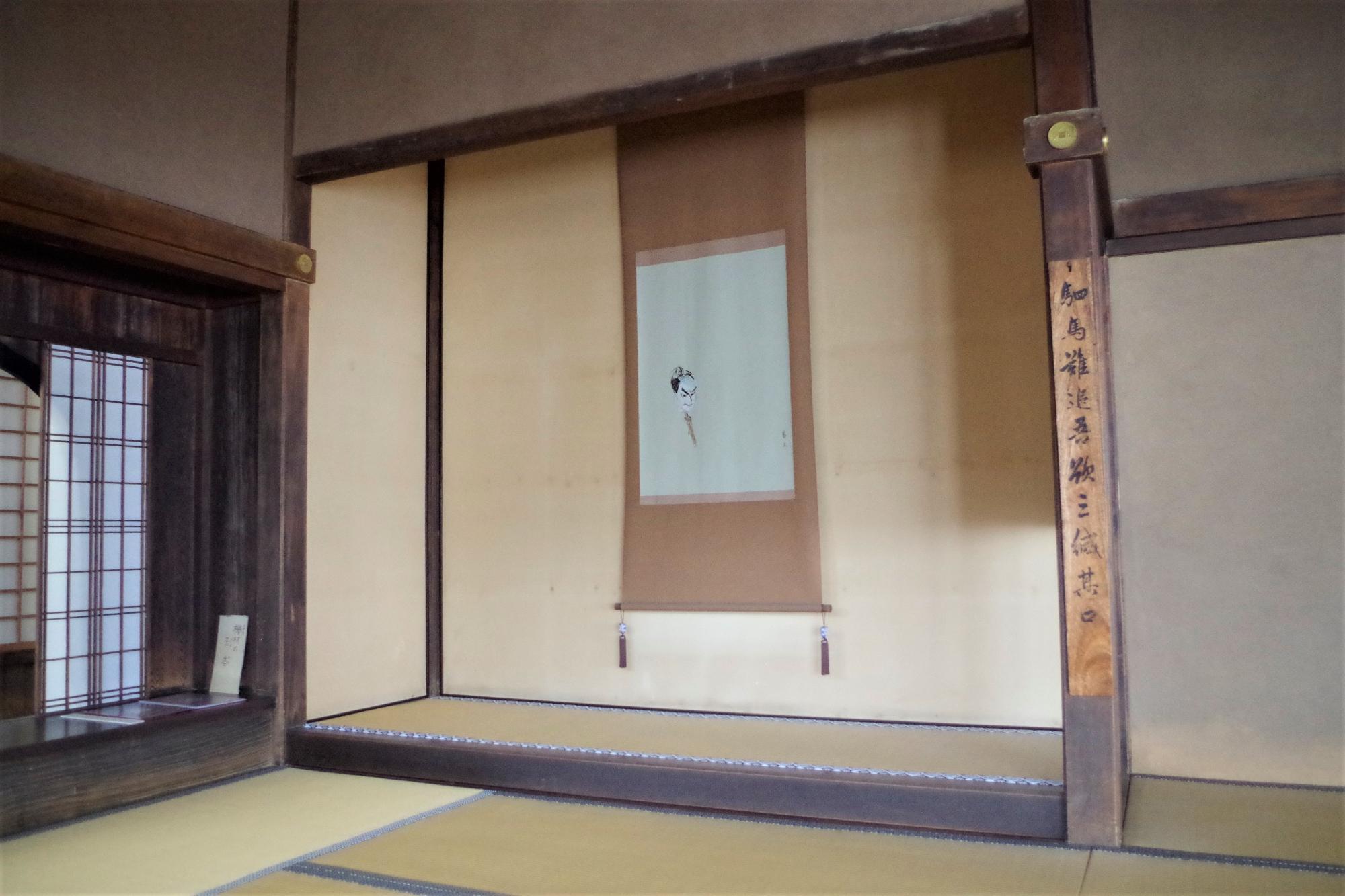 床の間に飾られた人形浄瑠璃の人形の絵。