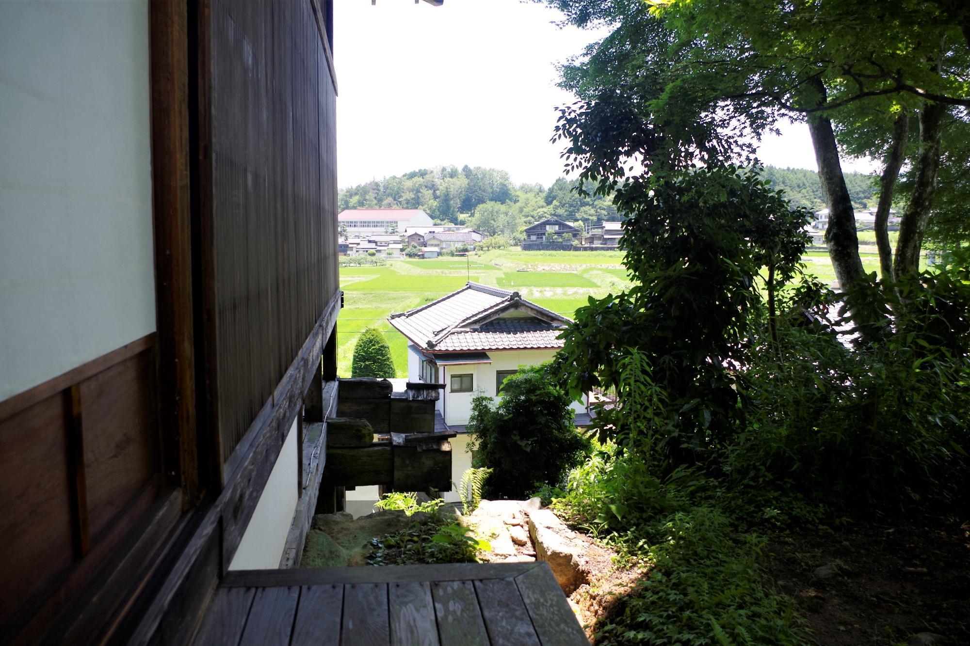 書院の裏手から伊豆木の風景を眺める。広々と見晴らしが良いですね。