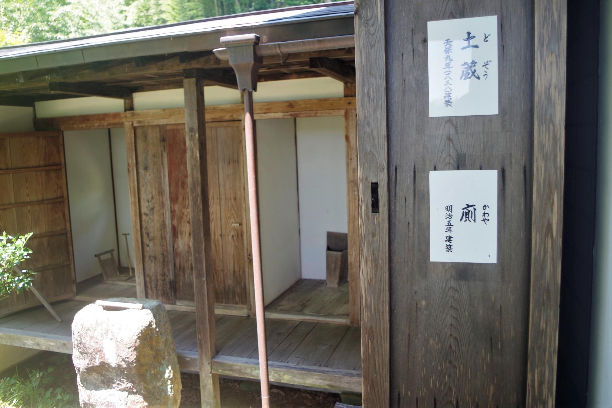 明治5年に建築された厠(かわや)も見えます。洋式トイレに親しみのある現代っ子は、こんなトイレを見たらびっくりしてしまうかもしれませんね。
