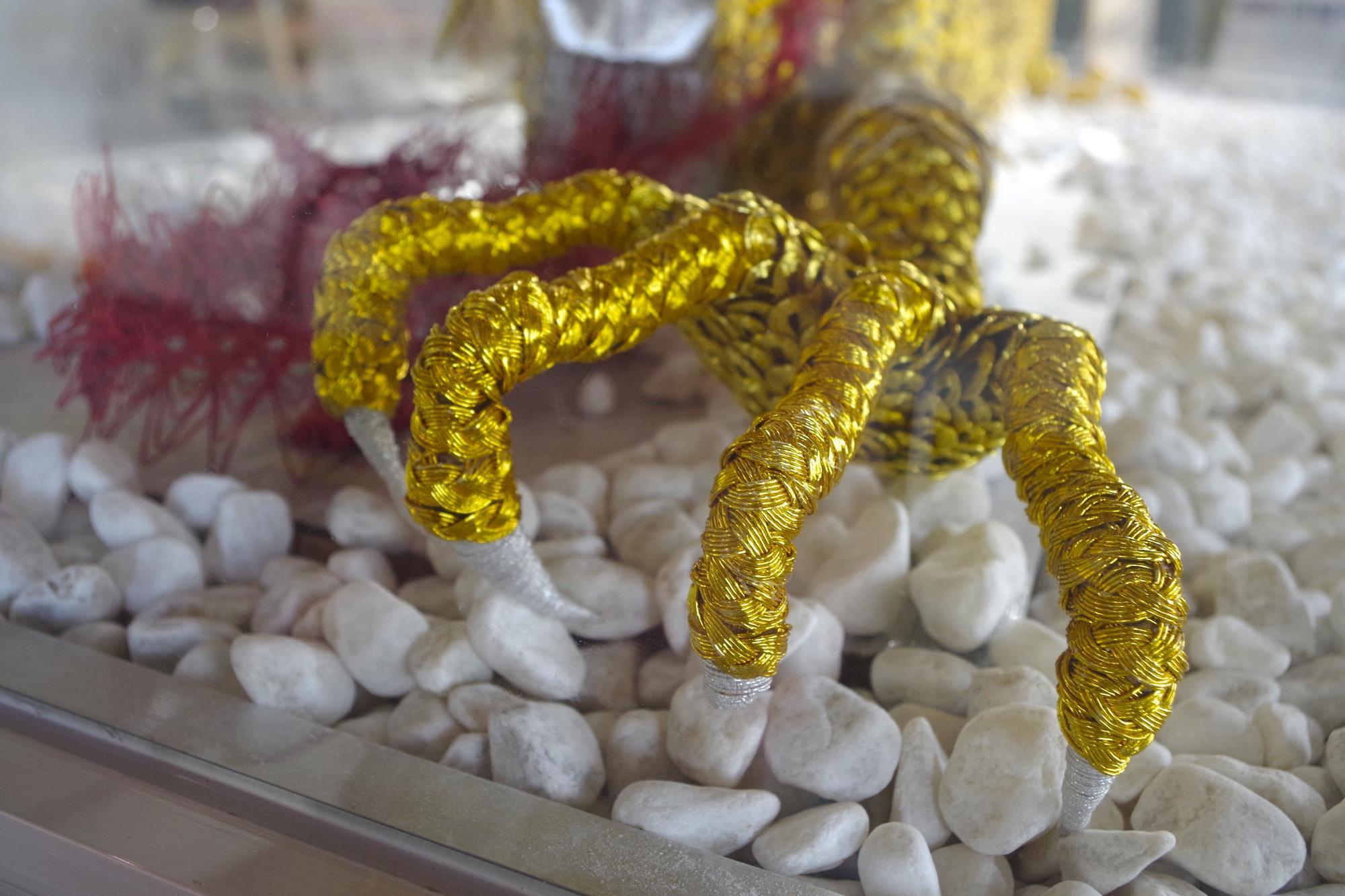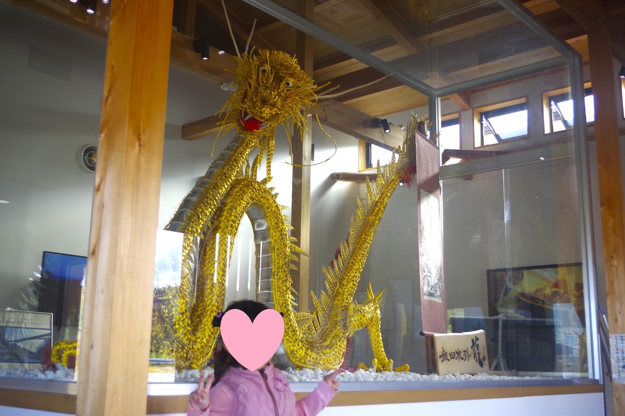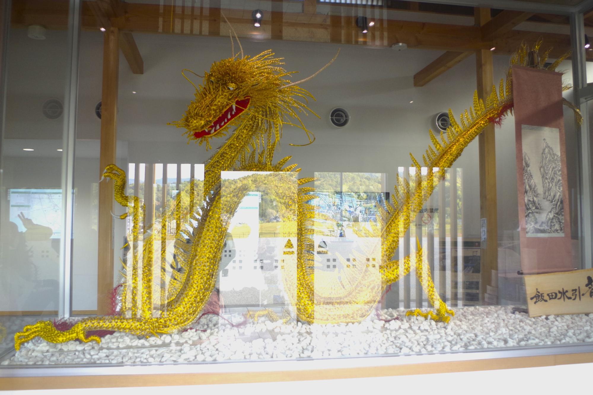 三遠南信自動車道の天龍峡パーキングにある情報発信施設内で、水引でできた大きな龍が展示されています。