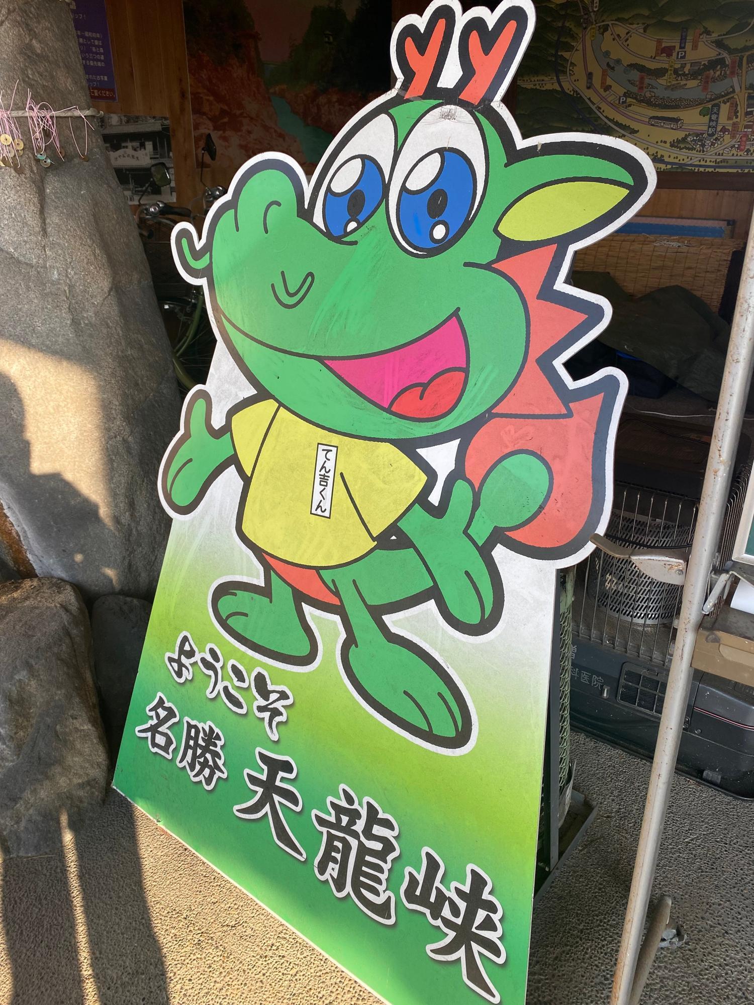 元気いっぱいの笑顔が魅力の龍の「てん吉くん」。こちらもJR天竜峡駅からすぐの天龍峡温泉観光協会の建物の前に居ます。