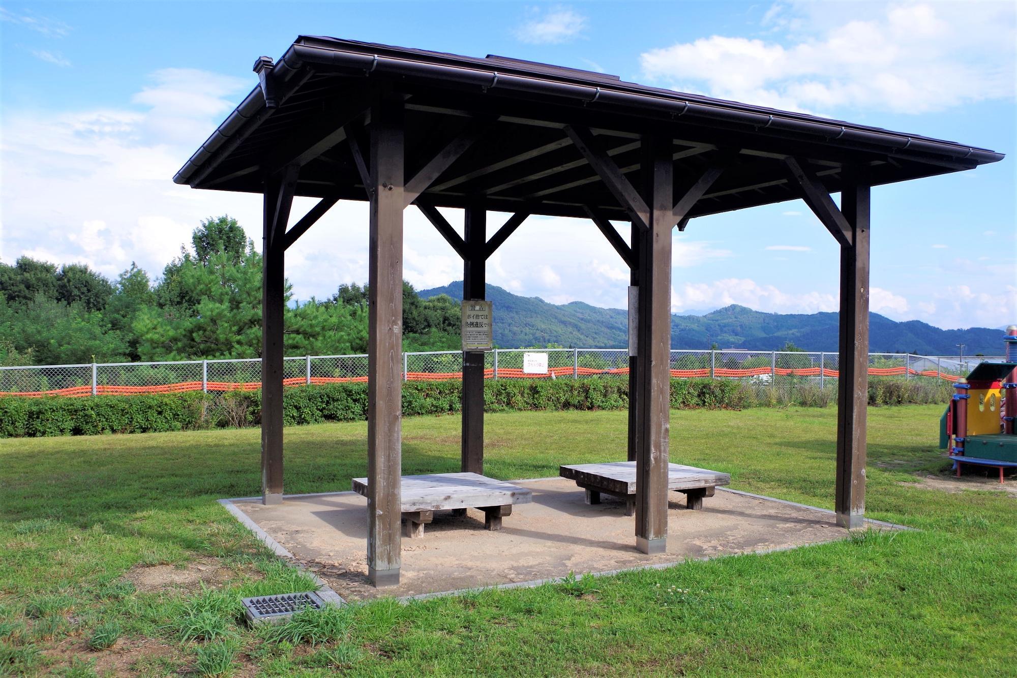 公園の中央にはあずまやもありましたが、木陰は少なめ。暑い日には日中を避けて利用するか、熱中症対策グッズを持って訪れましょう。付近には自動販売機やコンビニがなかったので、飲み物などは持参したほうが良さそうです。