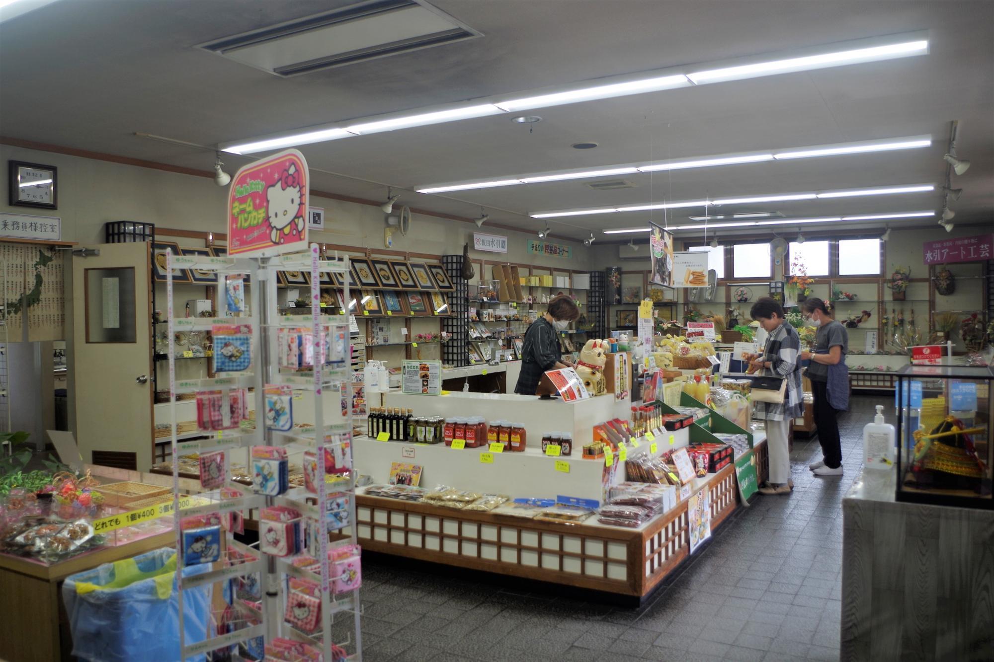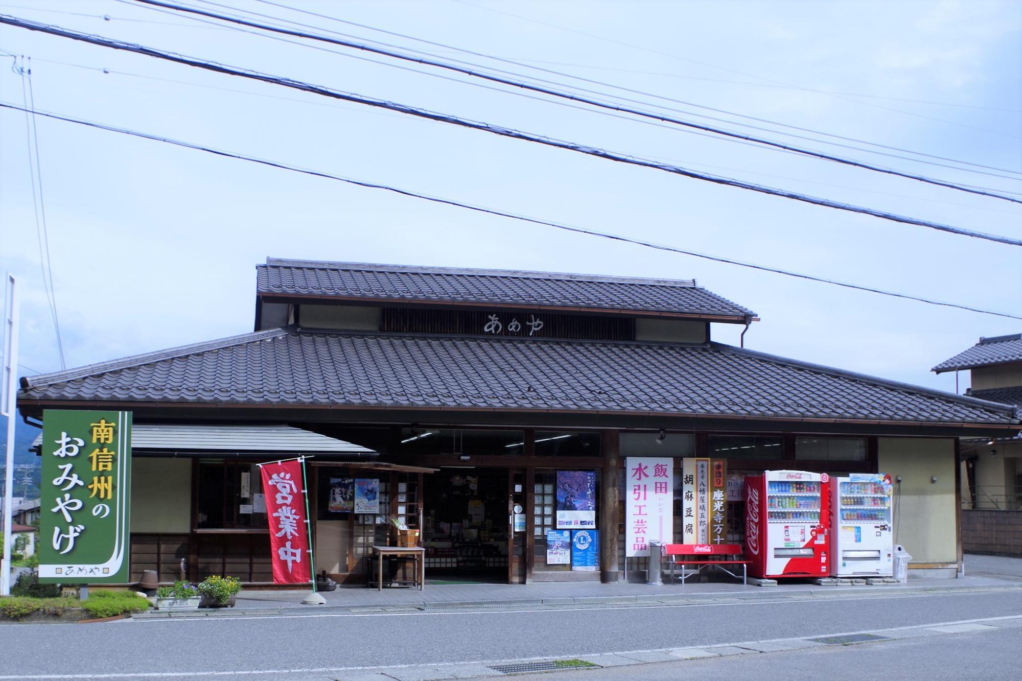 戦時中に芋飴製造を始めたという、あめや土産店。その時代の「あめや」の屋号を残しつつ、お土産店になってからの創業は約40年という老舗です。南信州のお菓子や佃煮などの食品、水引などの工芸品を扱っています。