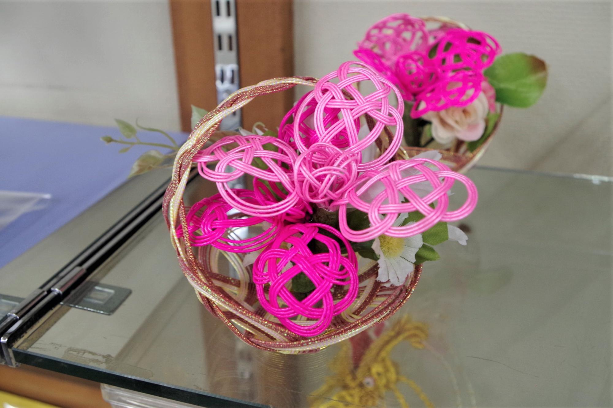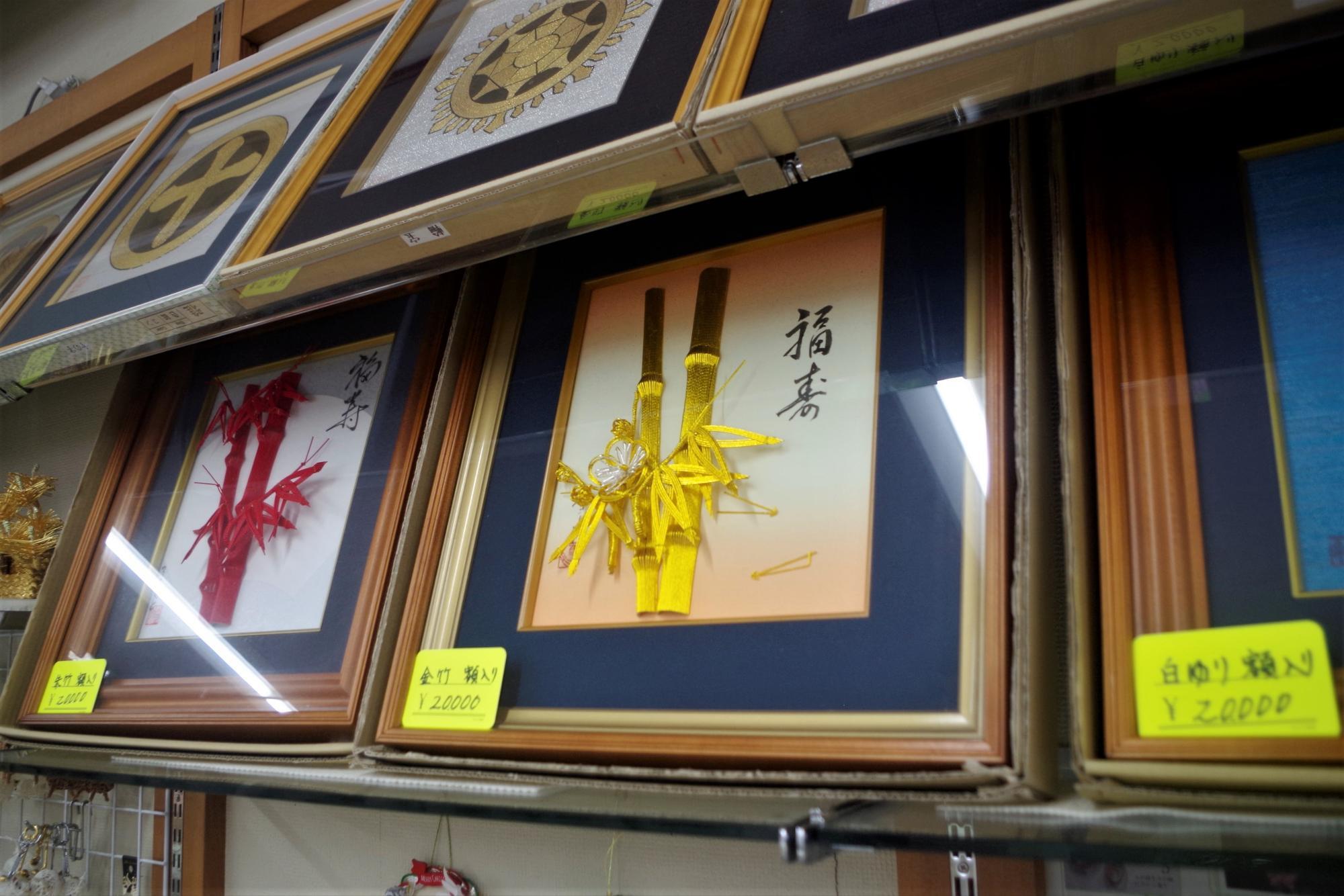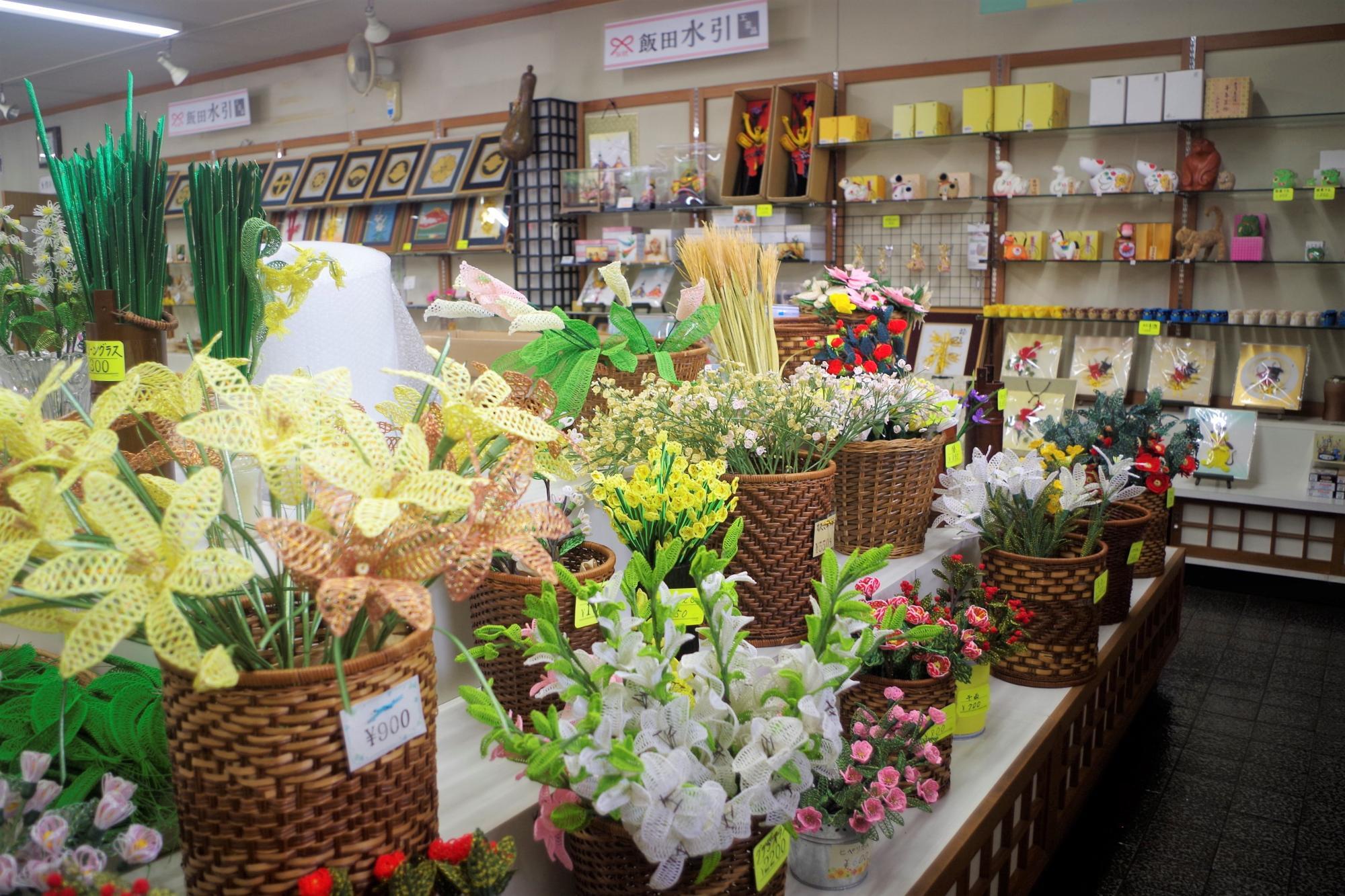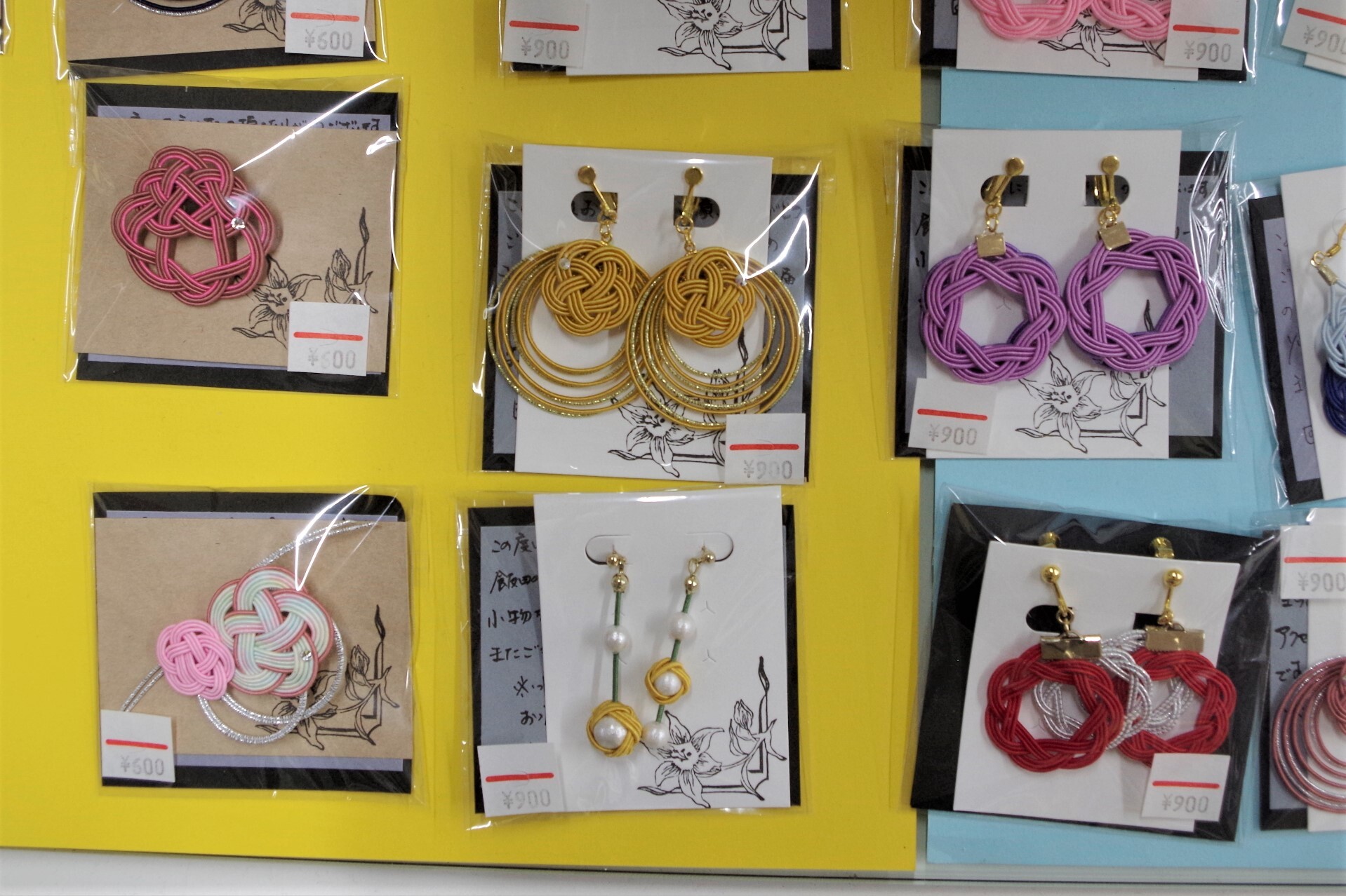 コロナ禍を機に、飯田市内で水引を扱う土産店も減ってしまったそうですが、あめや土産店には今でも水引アイテムが多数そろっています。結納品に使われるような昔ながらのオーソドックスな水引だけでなく、まるで生花のような水引、かわいらしい置物になった水引まで、ありとあらゆる水引製品を見ることができますよ。